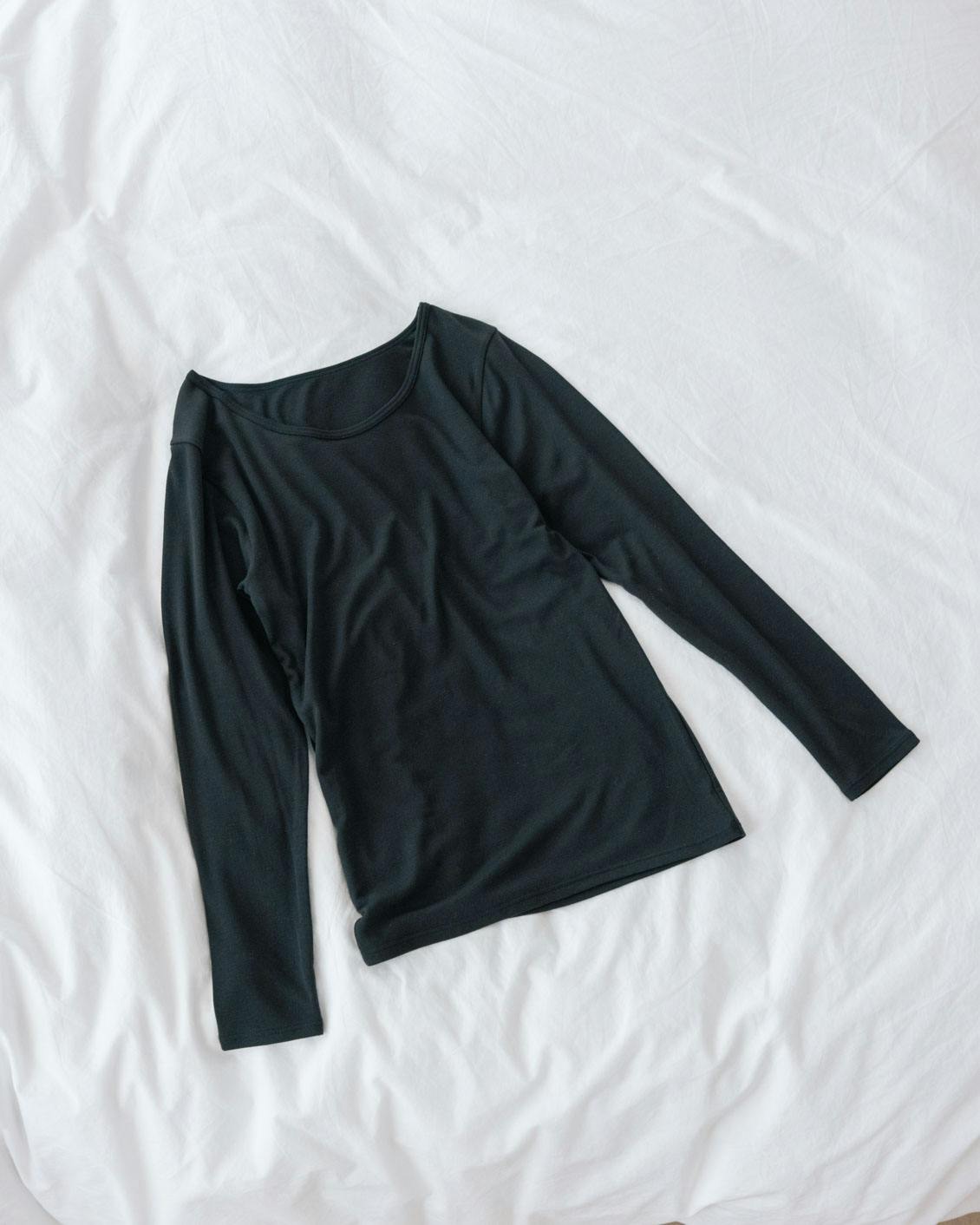 より幅広いご要望にお応えすべく、じんわりと暖かく、それでいて蒸れたり暑すぎたり……といったストレスがない「ウール混の長袖インナー」をつくりました。
