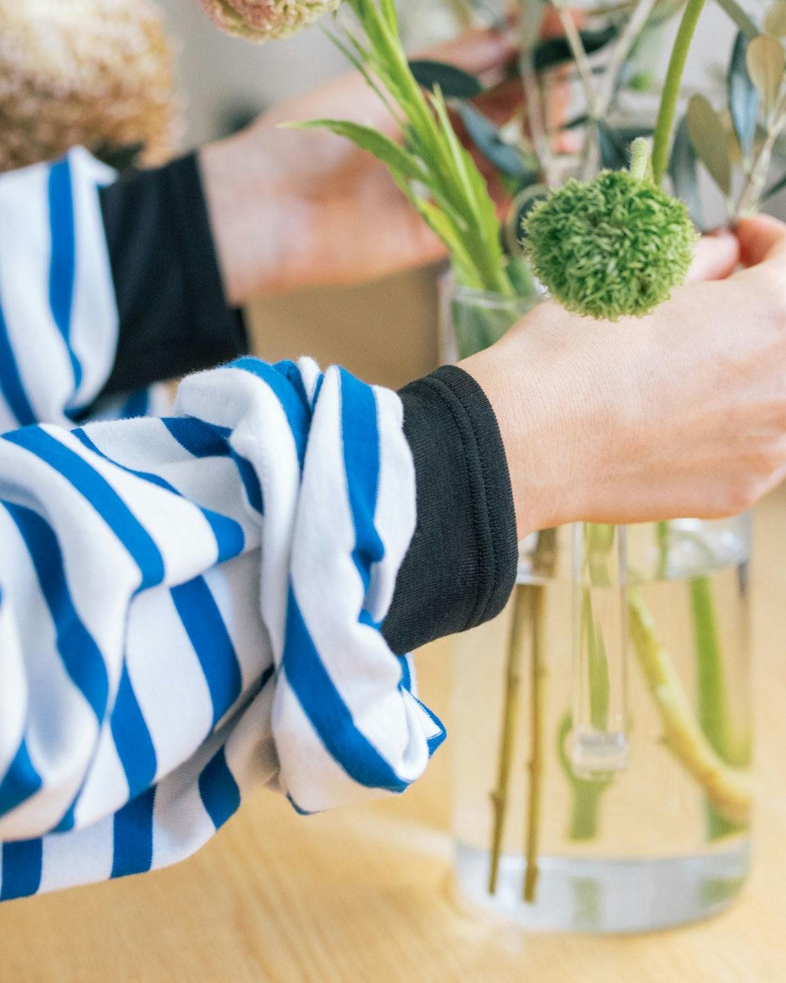 特に二の腕周りは少しゆとりをもたせ、ぎゅっとした圧迫感のない動きやすさを考えた仕様に。
