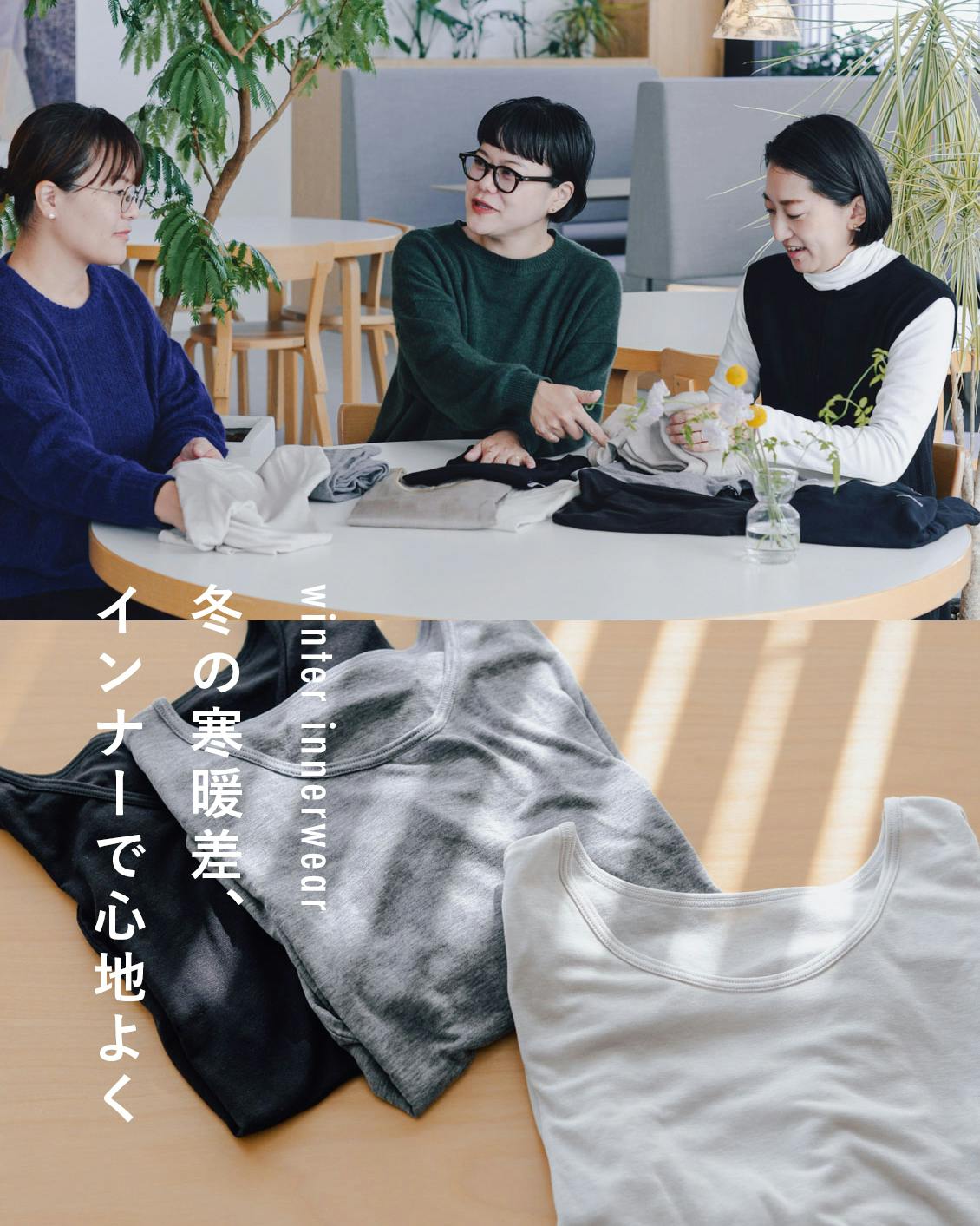 今回は、寒暖差での汗悩みや素材選びも。「何を着るか・重ねるか?」スタッフ3人でおしゃべりしました。