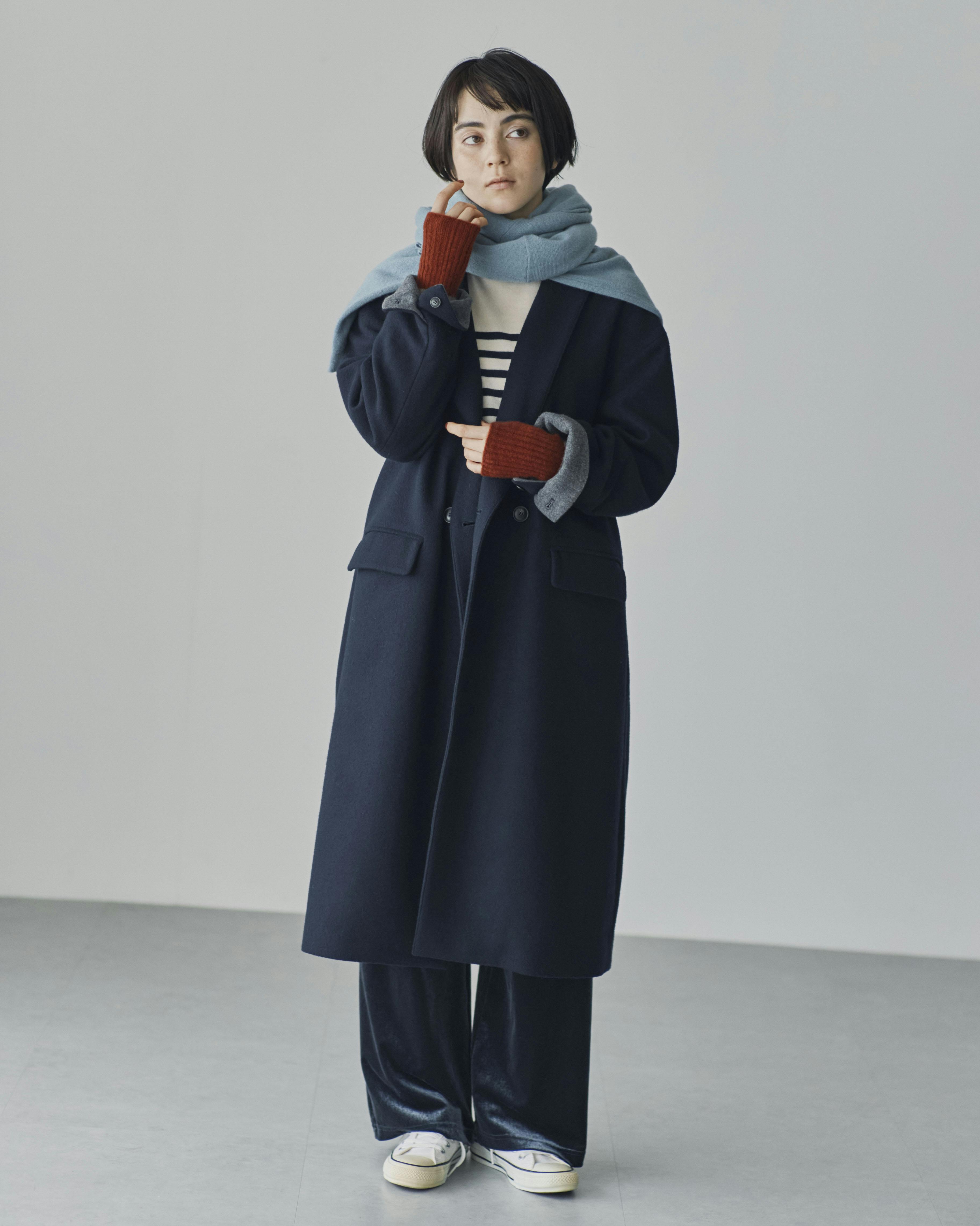 アウターからのぞく色の向きを変えれば、また違った印象に。