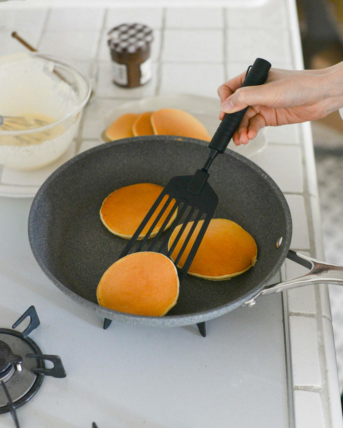 コーティングを長持ちさせるためには、木製や シリコーン製のキッチンツールがおすすめですが、丈夫で摩耗に強いので、金属製のヘラが使えるのも頼もしいポイント。