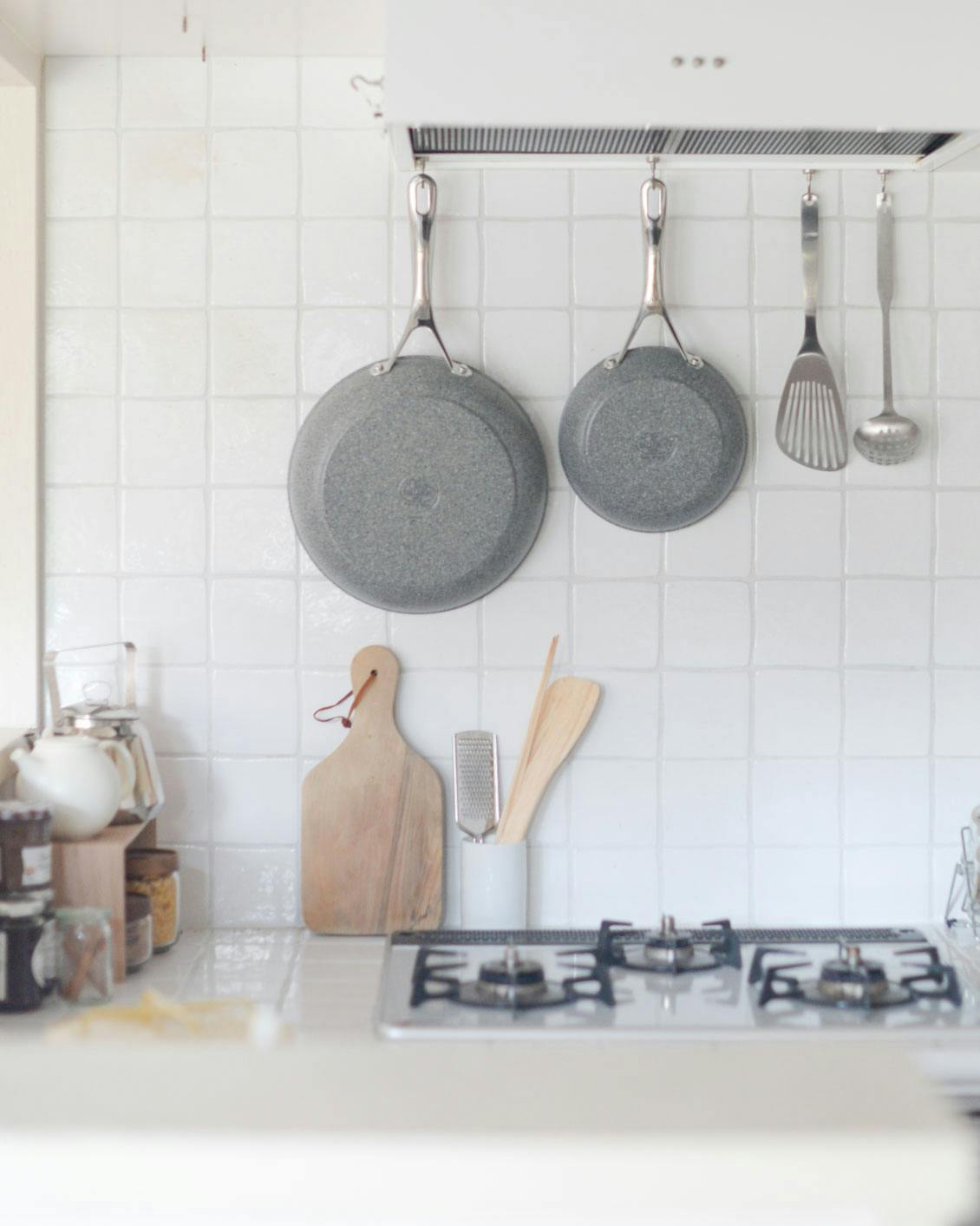 ハンドルにはフック穴が開いているので、吊るして「見せる収納」もOK。キッチンに出しっぱなしにしておいても絵になる姿は、さすがイタリアのデザインです。