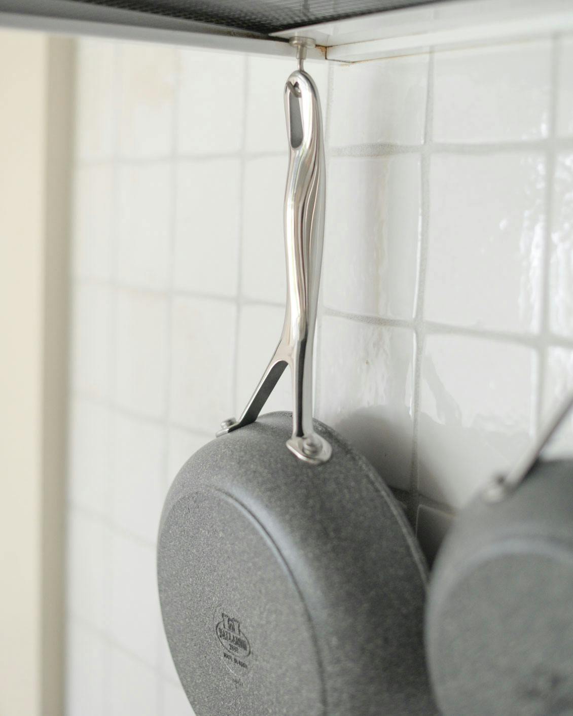 ハンドルにはフック穴が開いているので、吊るして「見せる収納」もOK。キッチンに出しっぱなしにしておいても絵になる姿は、さすがイタリアのデザインです。
