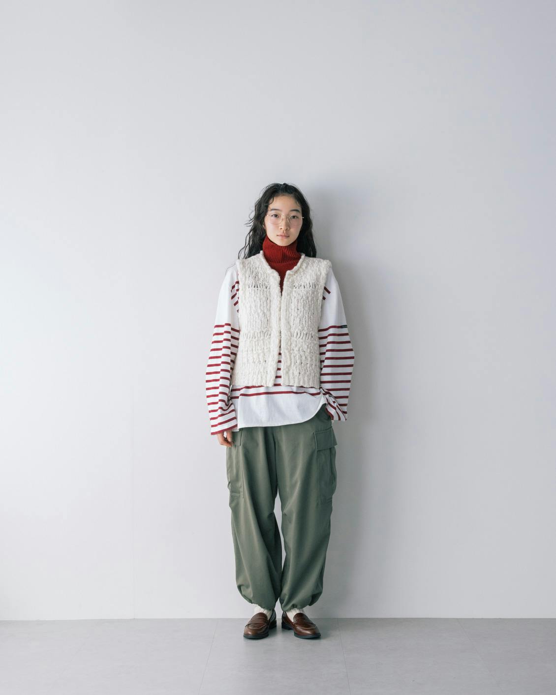 グラフィックデザイナーの葉田いづみさんに、このベストのコーディネートをたっぷりご紹介してもらいました。