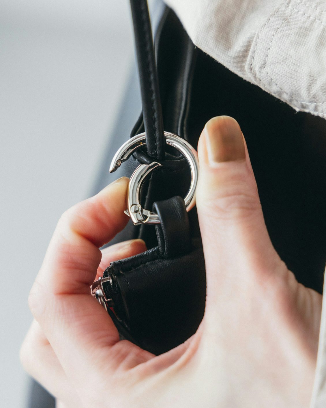 小ぶりなサイズだからブラックでも重たくならず、いつでも持ちやすい存在感です。