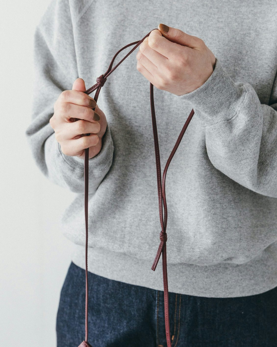 ストラップは結び目の位置をスライドさせることで、長さ調節ができるようになっています。