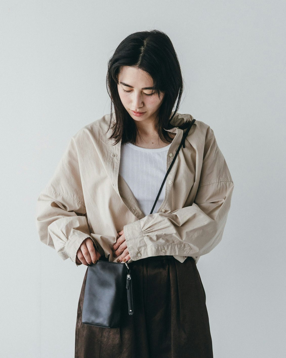程よい「きちんと感」があるから、ラフな日常着に合わせてもクリーンな印象に。普段使いはもちろん、ちょっぴりおめかししたいシーンにも寄り添うポシェットです。