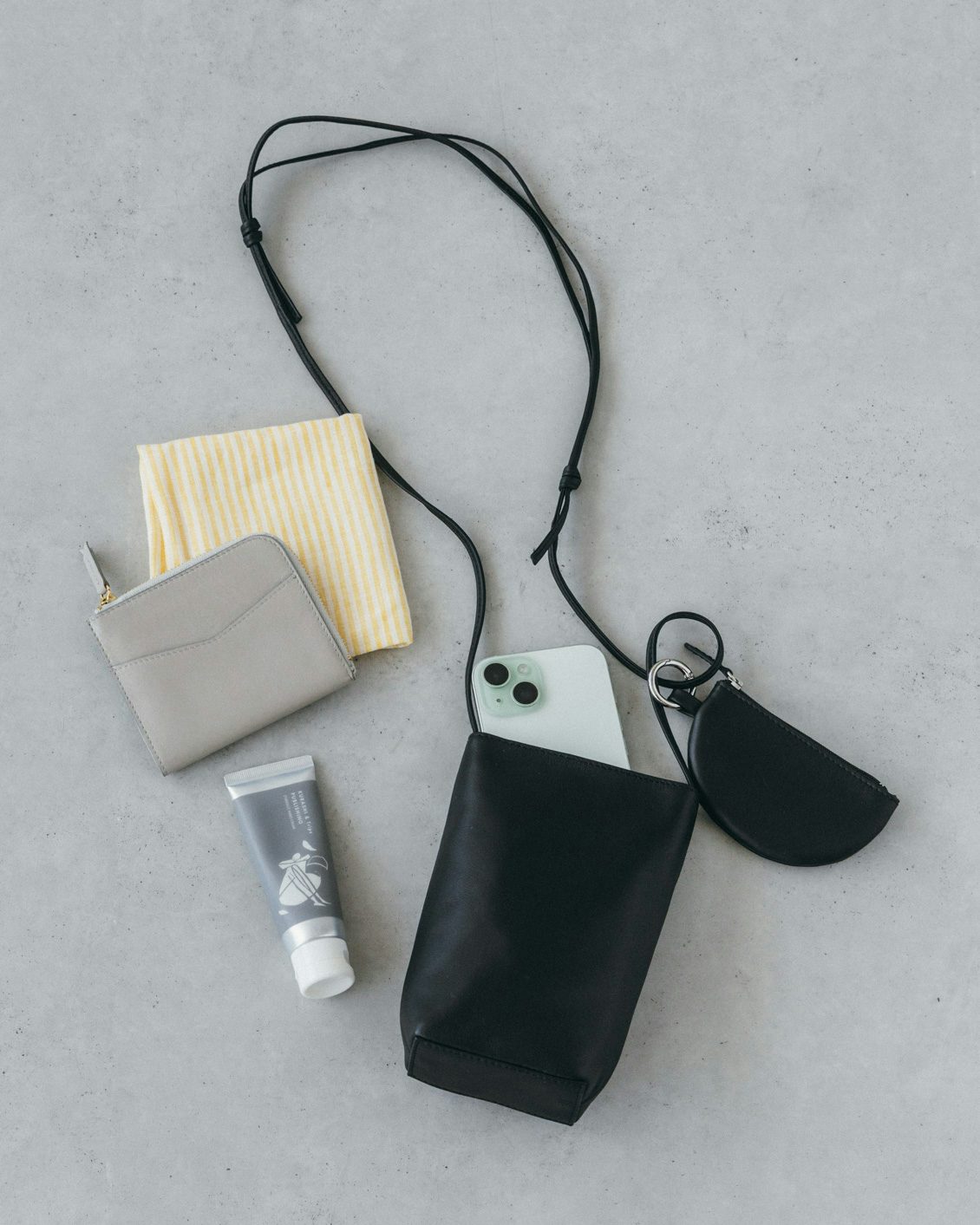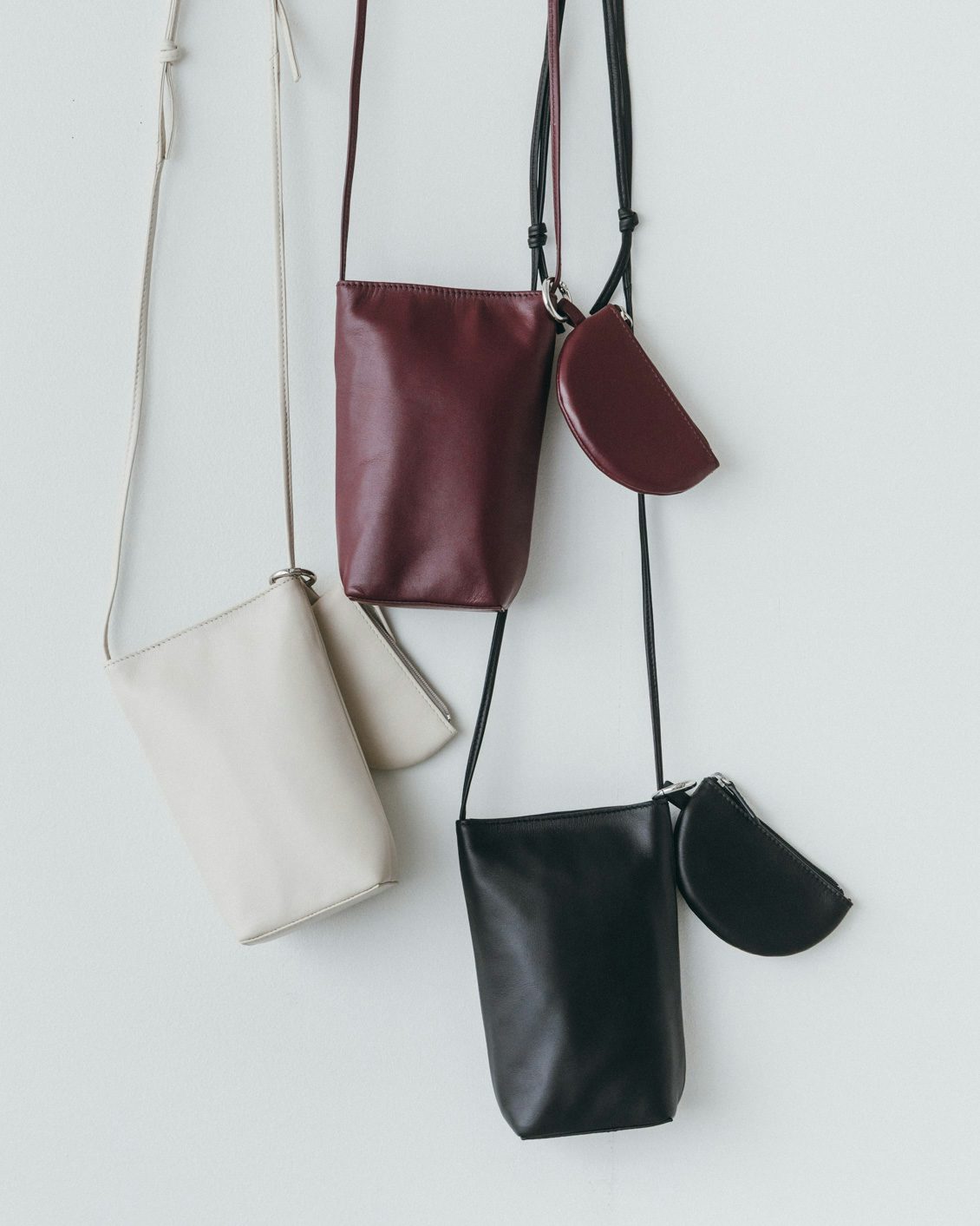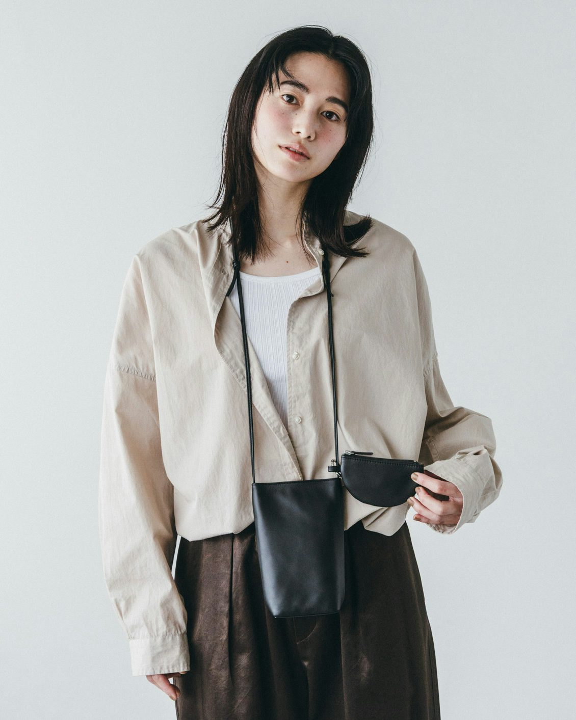 「品よく、身軽に」レザースマホポシェット(ミニポーチ付き)