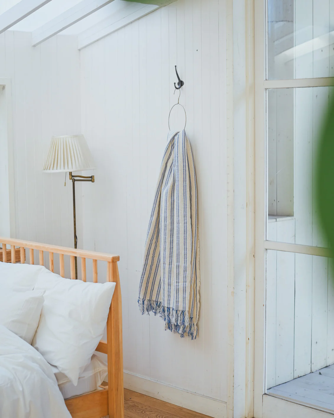さりげないポイントになってくれるカラー。生成りに映えるブルーのストライプが空間にさわやかなリズムを与えてくれます。