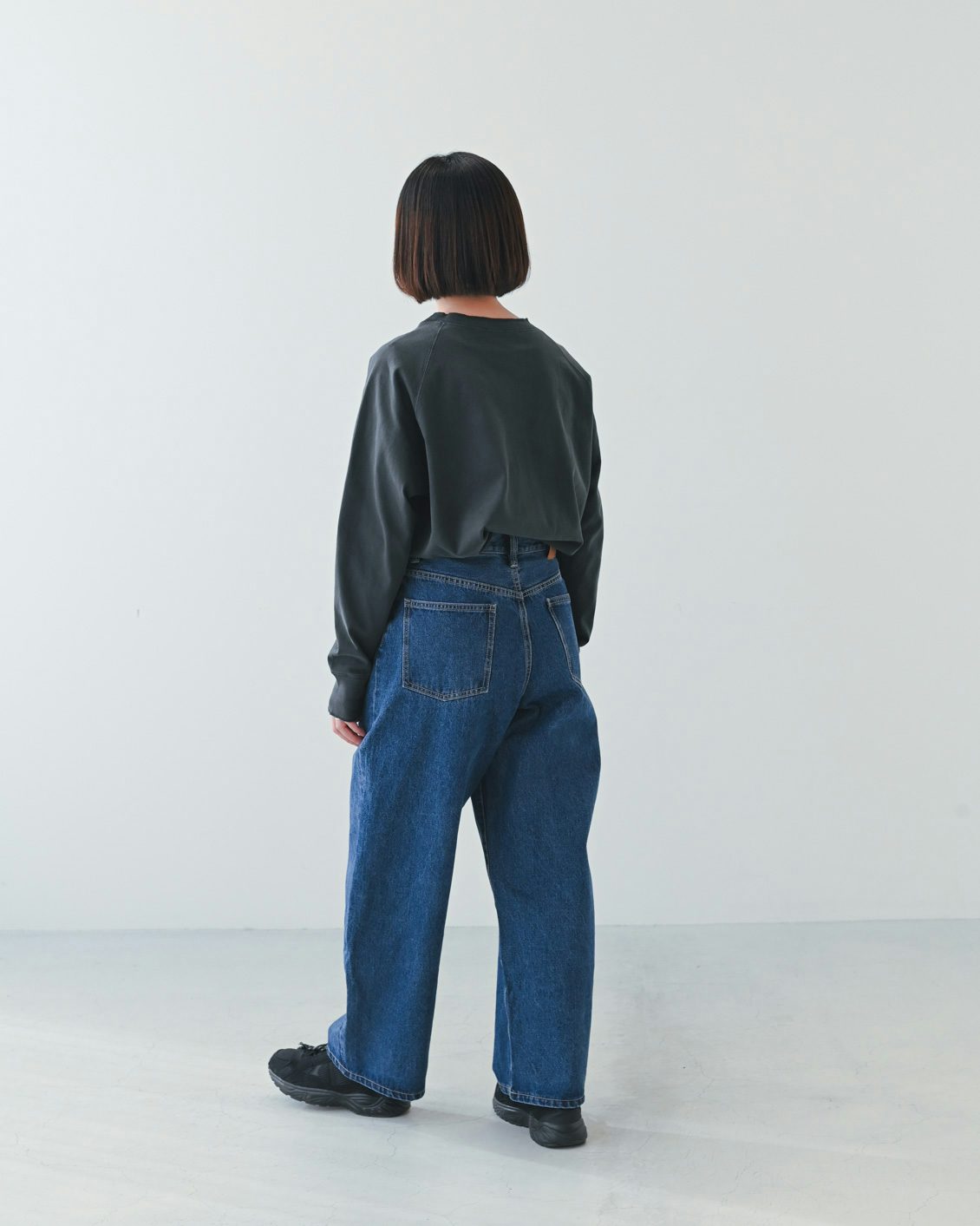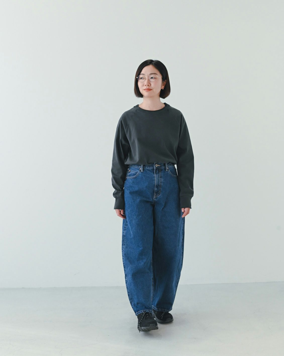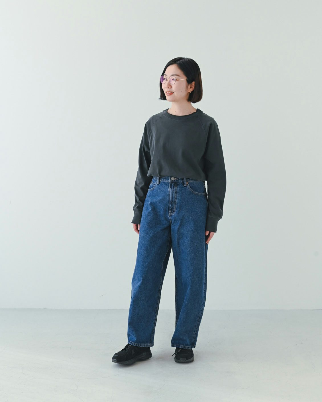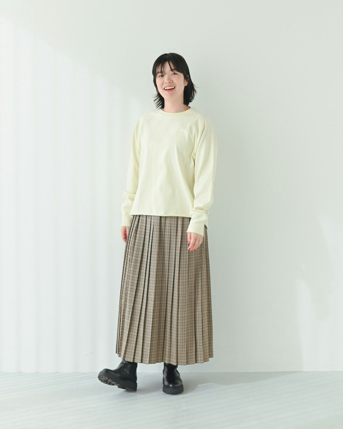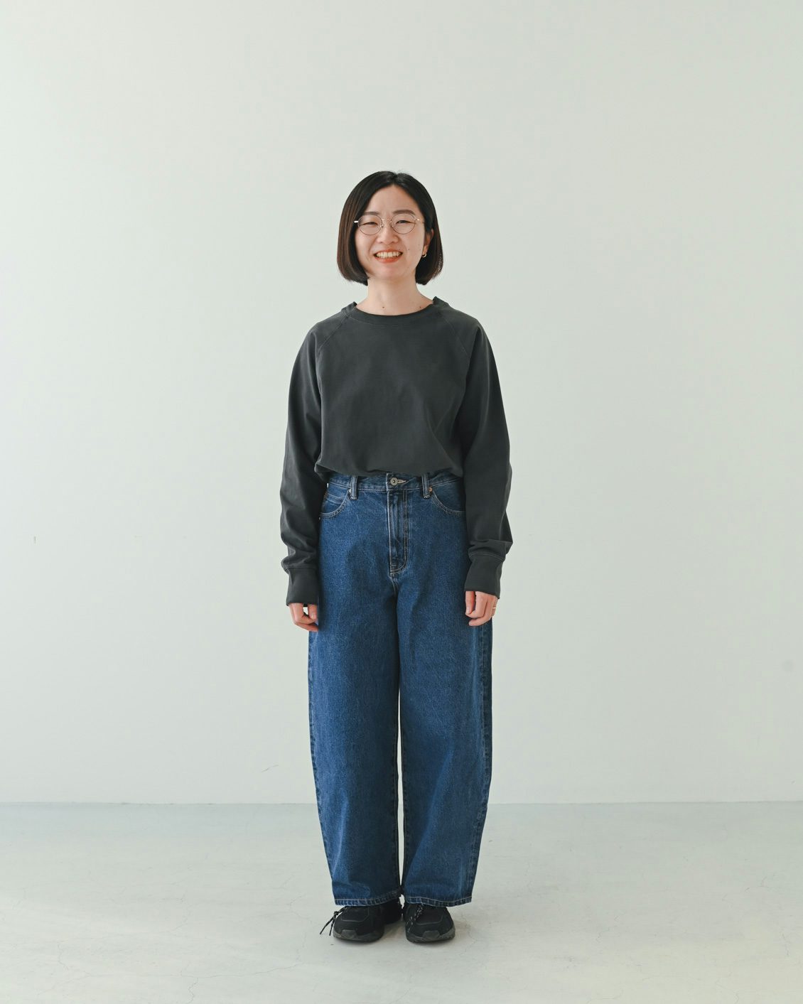 とはいえインもできそうな生地なので、デニムに前だけ少しインしてベルトを覗かせたり、スカートにインしてすっきり着たりと、その日の気分で変えて楽しみたいです」