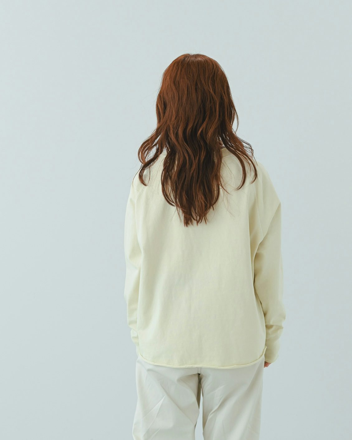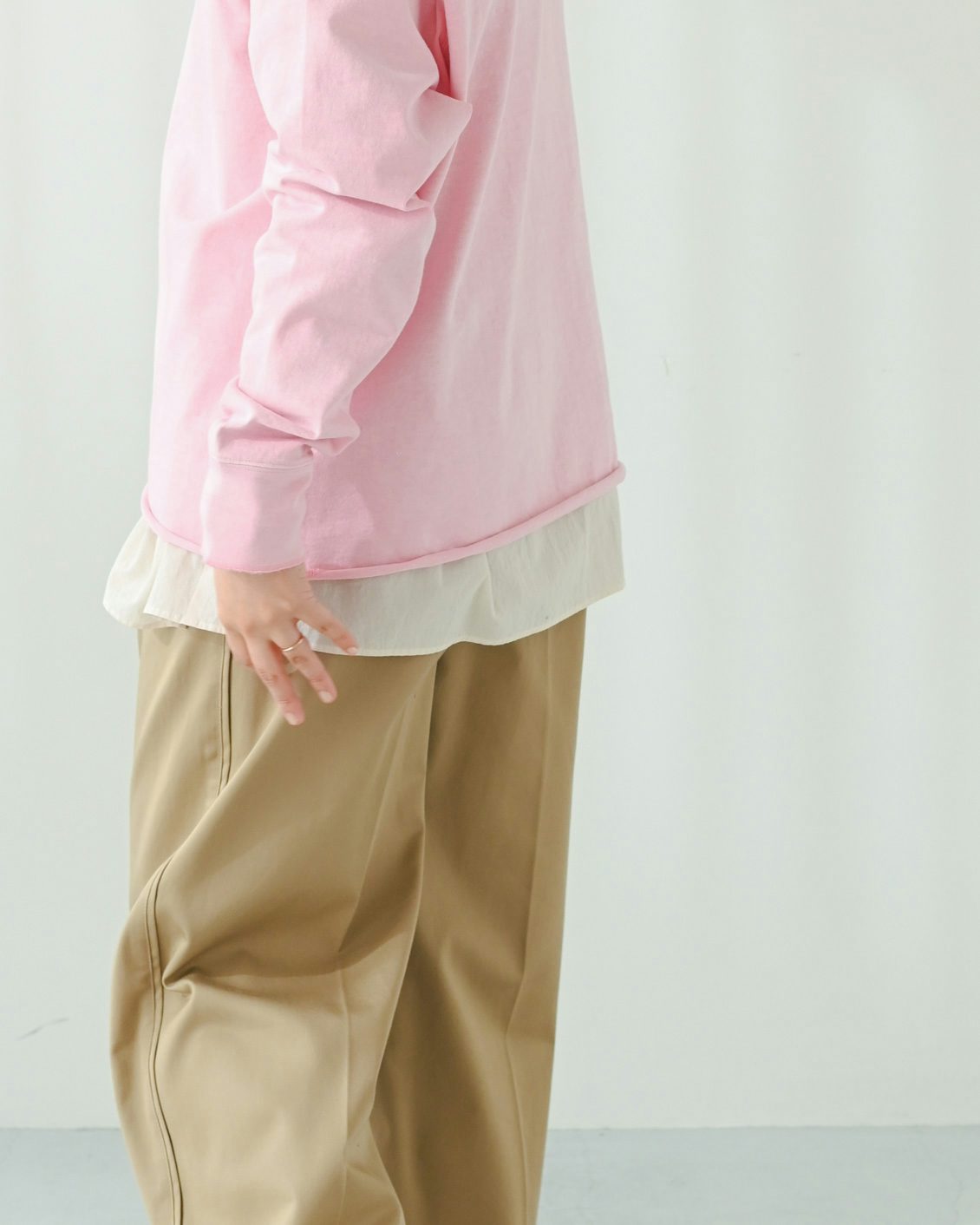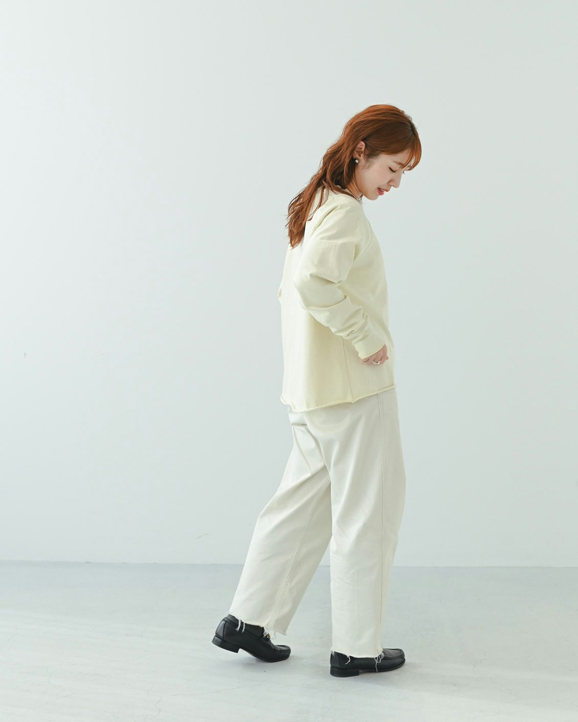 でもこのプルオーバーは、襟元や裾の切りっぱなし感がこなれた印象に見せてくれるのかもしれません。