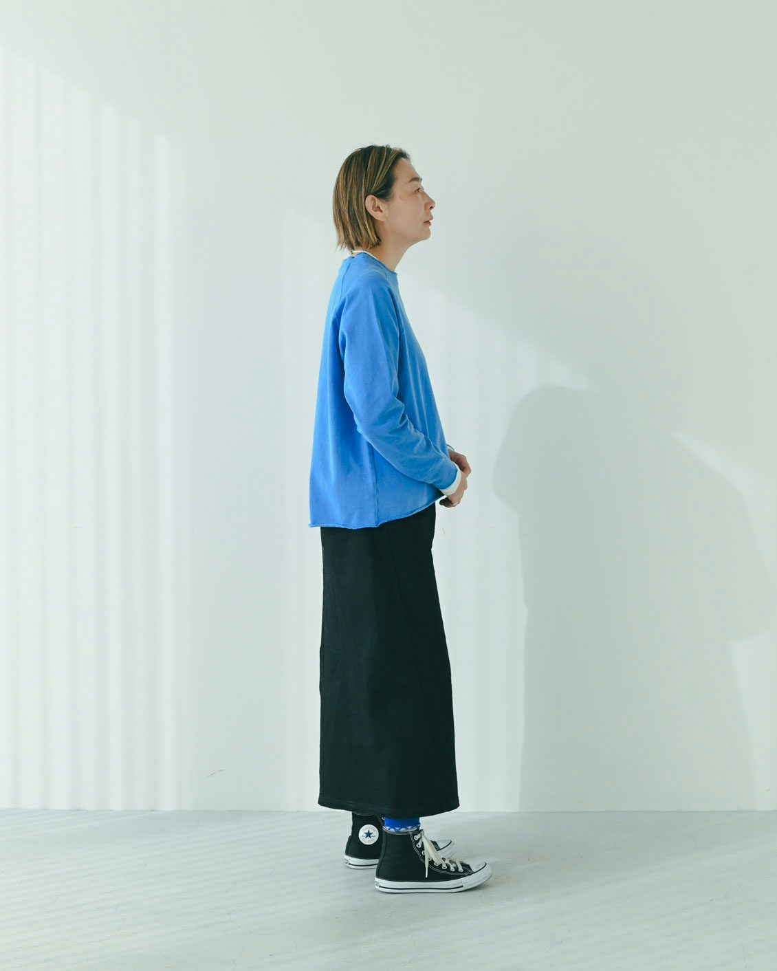シャツではよく見かける色ですが、カットソーでこの鮮やかなブルーを楽しめるのは、なんだか新鮮でワクワクします。