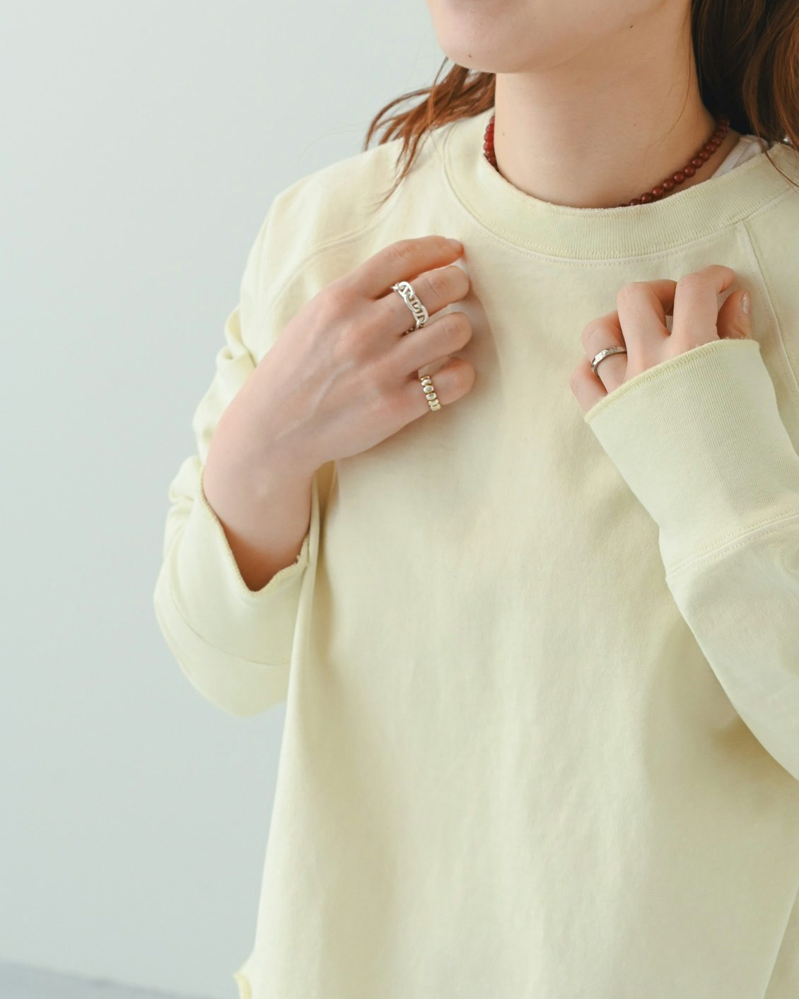 ロンTだと心許ないけれど、厚手のスウェットだと肩が凝ってしまう……そんな今の気分にぴったりの、使い勝手の良さを感じます。