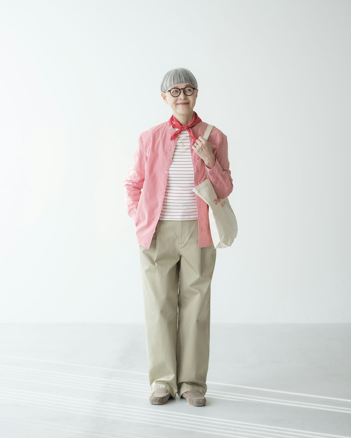 1955年生まれ。夫と静岡県富士宮市で写真館を32年間営み、2024年に閉業。その後自宅を手放して1DKのアパートに引越し、身軽な暮らしを楽しんでいる。日々のコーディネートをInstagramに投稿中