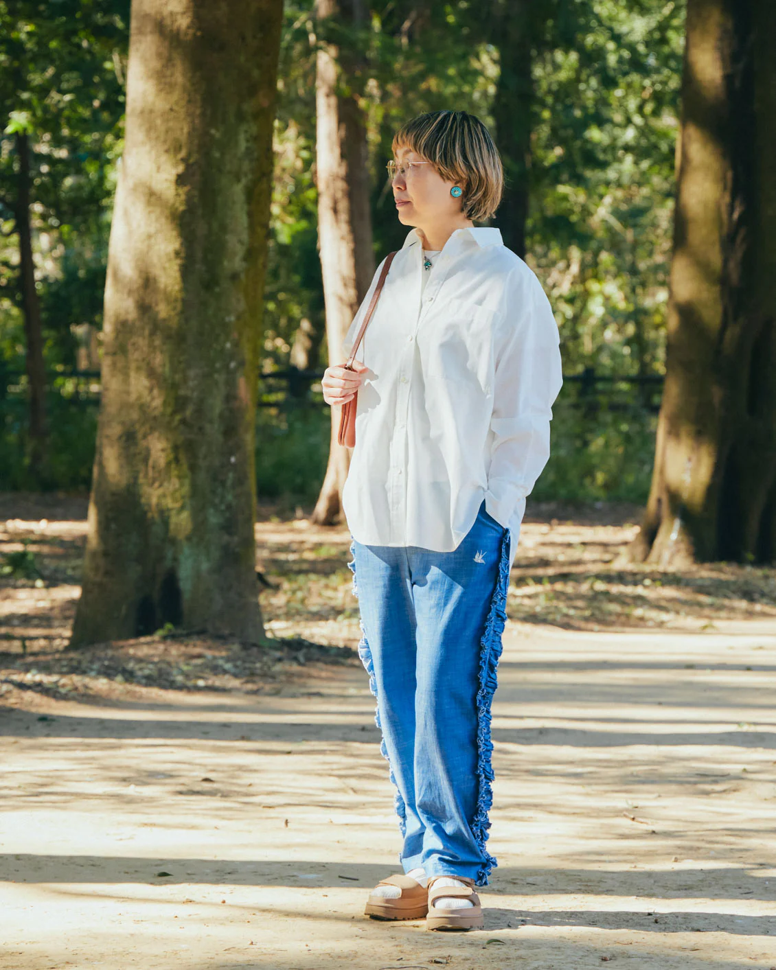 「デニム素材は好きだけれど、実はジーンズにはコンプレックスがあって。これならはいてみたい、と思えたのがこのフリル付きのデザインのものでした。