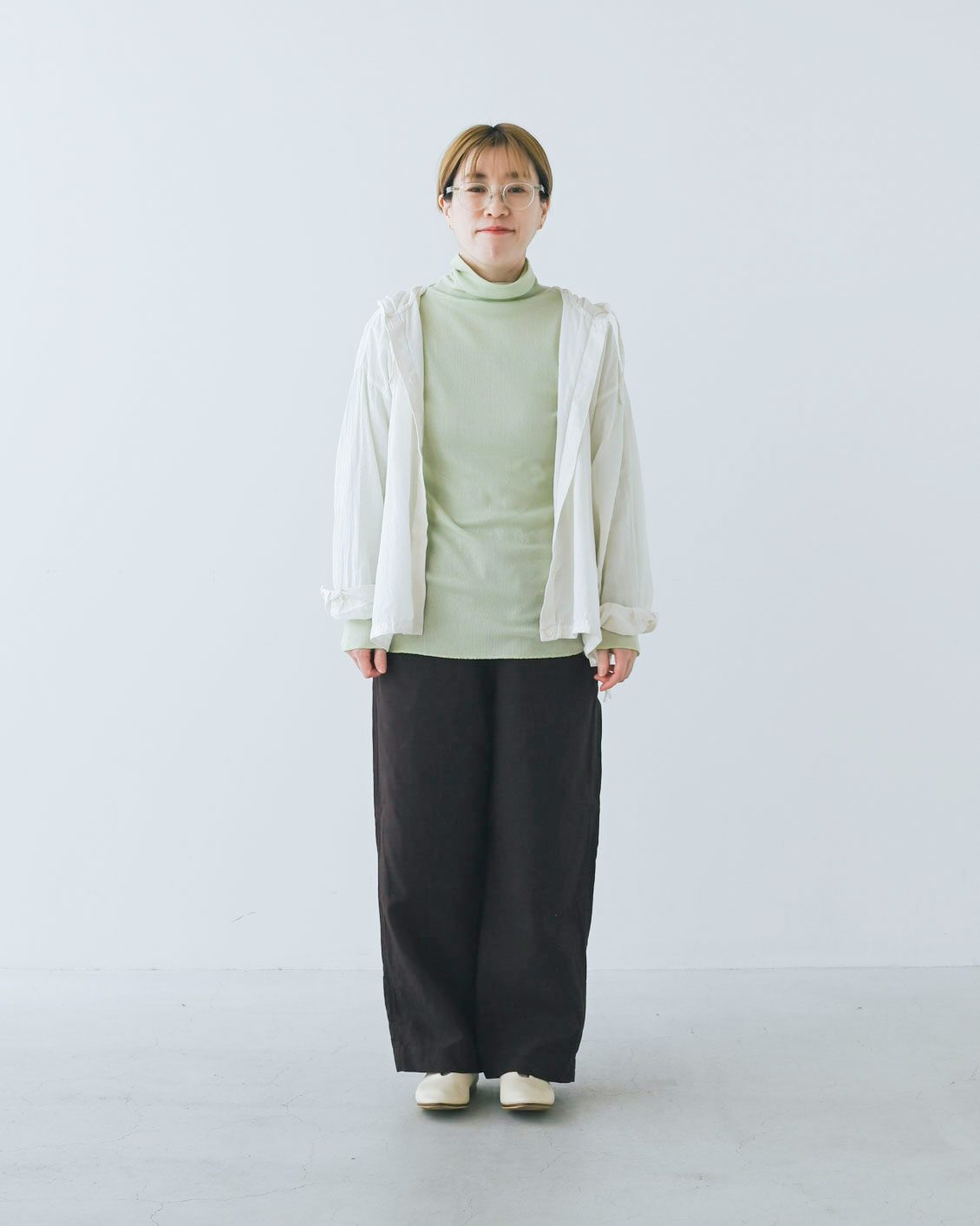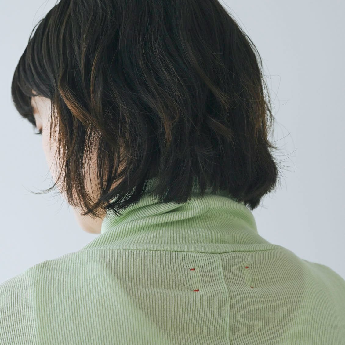 「MEYAMEのタートルネックはデザインが素敵で。繊細なリブだったり、外に出した縫い目の立体感のあるラインだったり、他にはないディテールに惹かれました。1枚でも着てみたくなるタートルネックだなと思います」