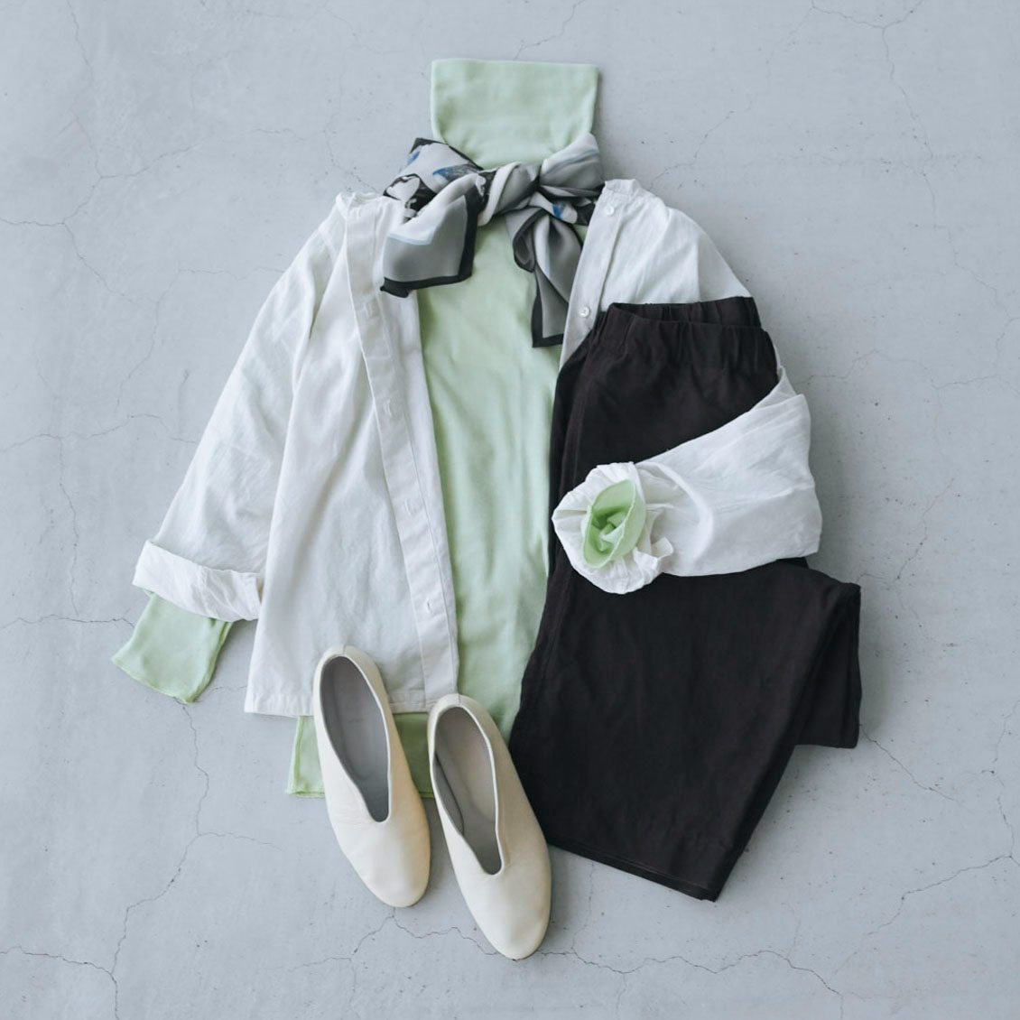 「3色とも使えそうで悩んだんですが、黒いタートルネックは他に持っていたので、クリームとミントグリーンのどちらかにしようと思って。最終的に肌なじみが良いと聞いて、クリームを買ってみました。