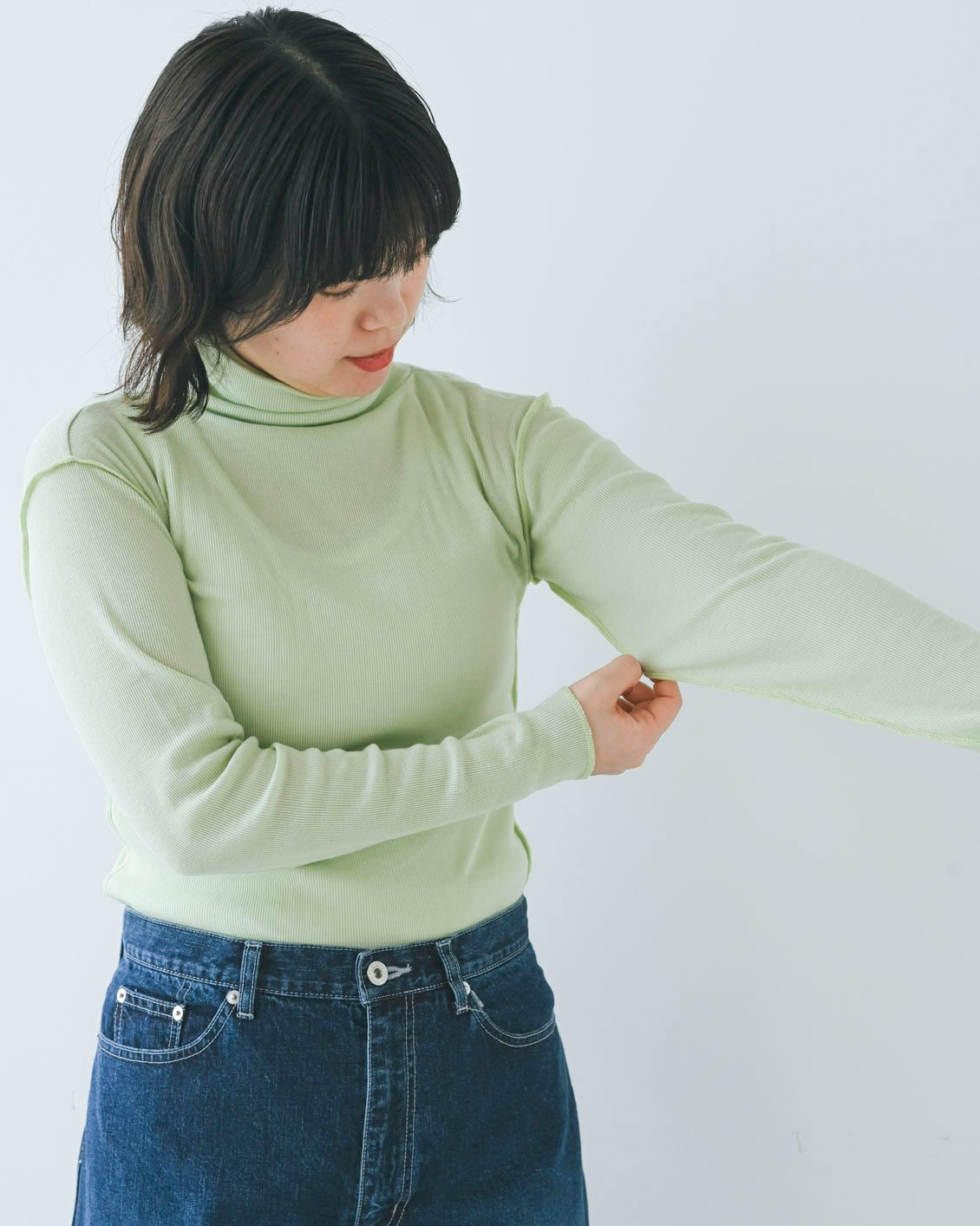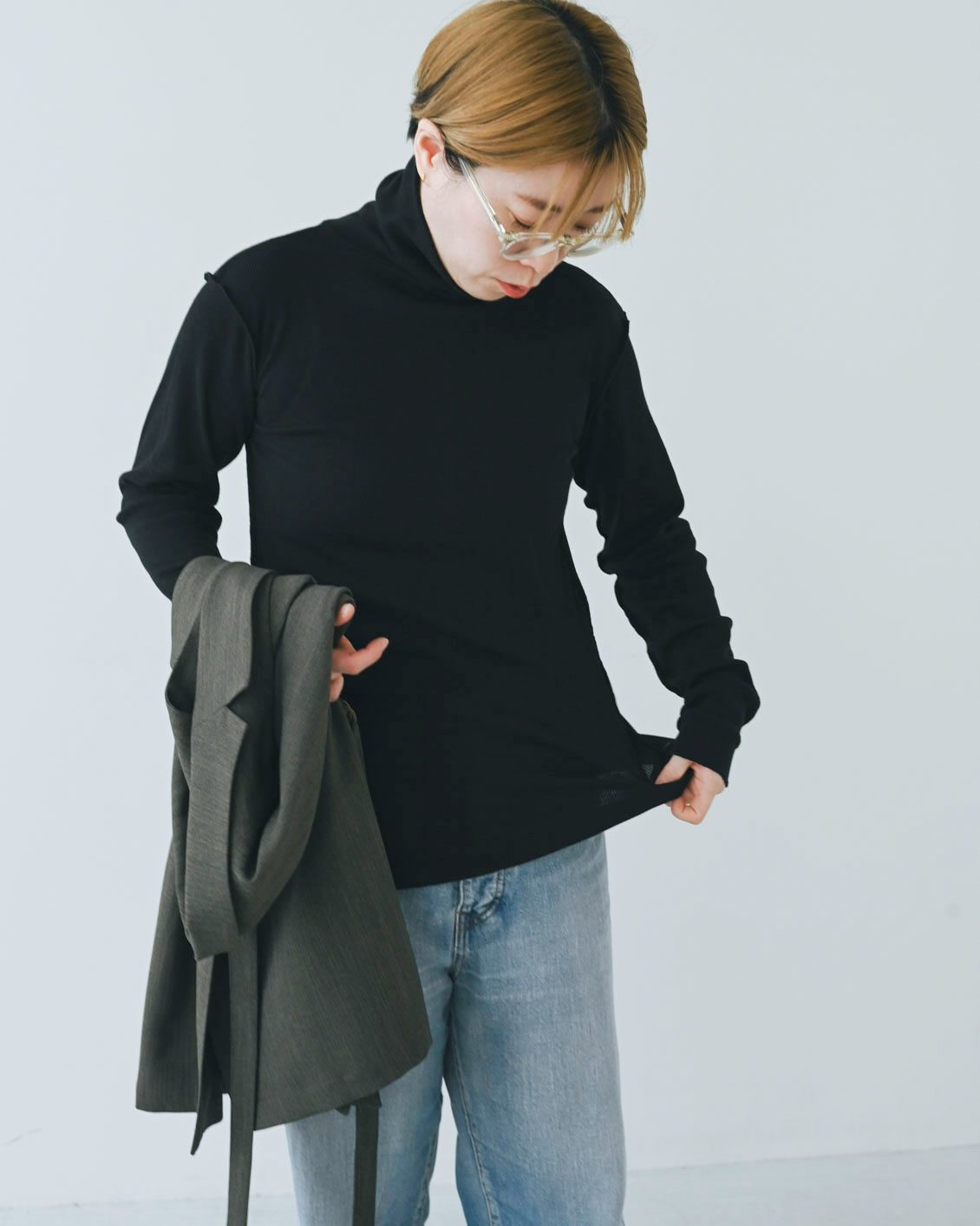 着てみたら身体に触れる部分の肌触りが、今まで持っているタートルネックの中では一番気持ちよくて、本当に驚きました。縫い地が表に出ているので、内側にチクチクを感じる要素がないんです。
