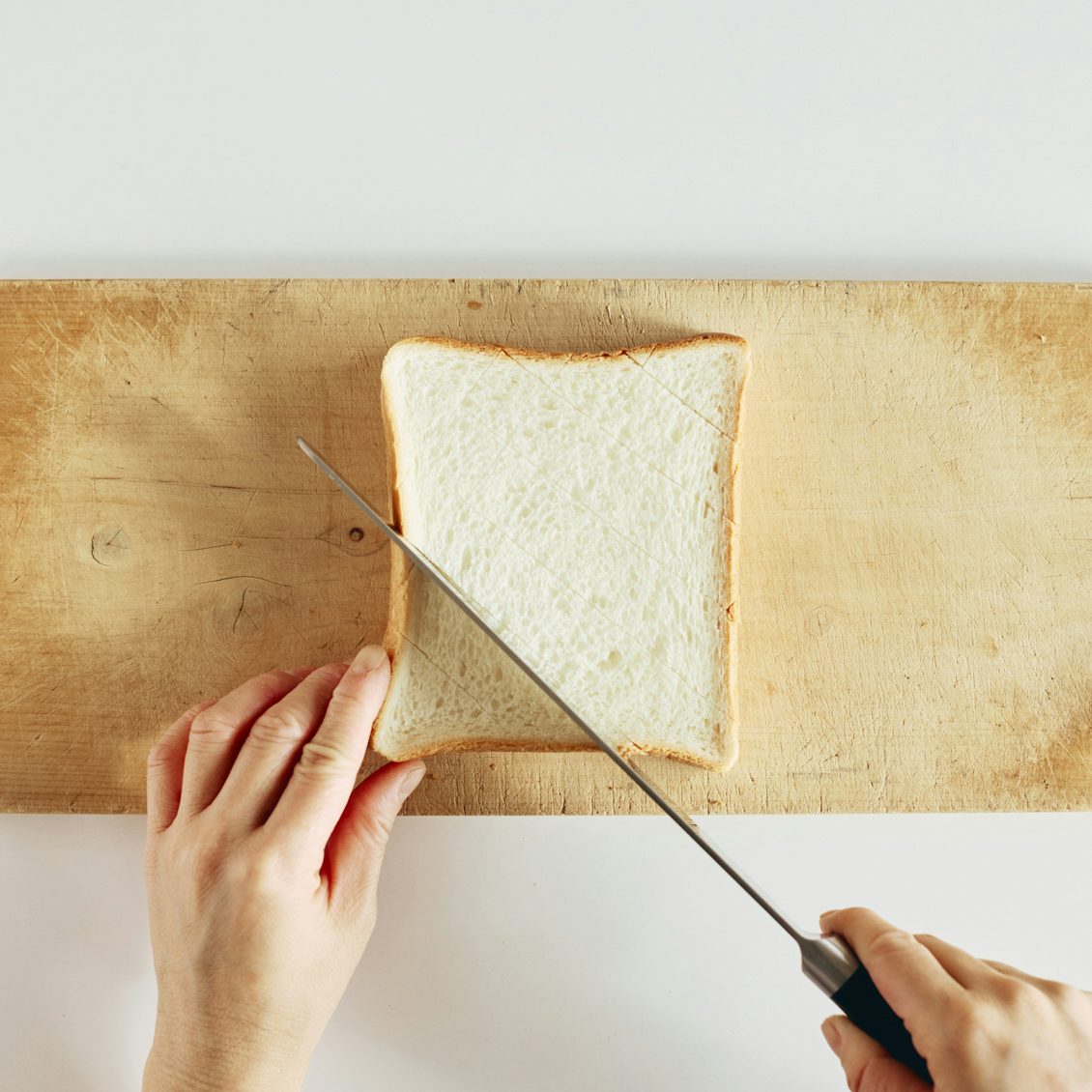 4枚切りは分厚いので、先に切り込みを入れておくとバターが中まで染み込んでよりおいしくなります」