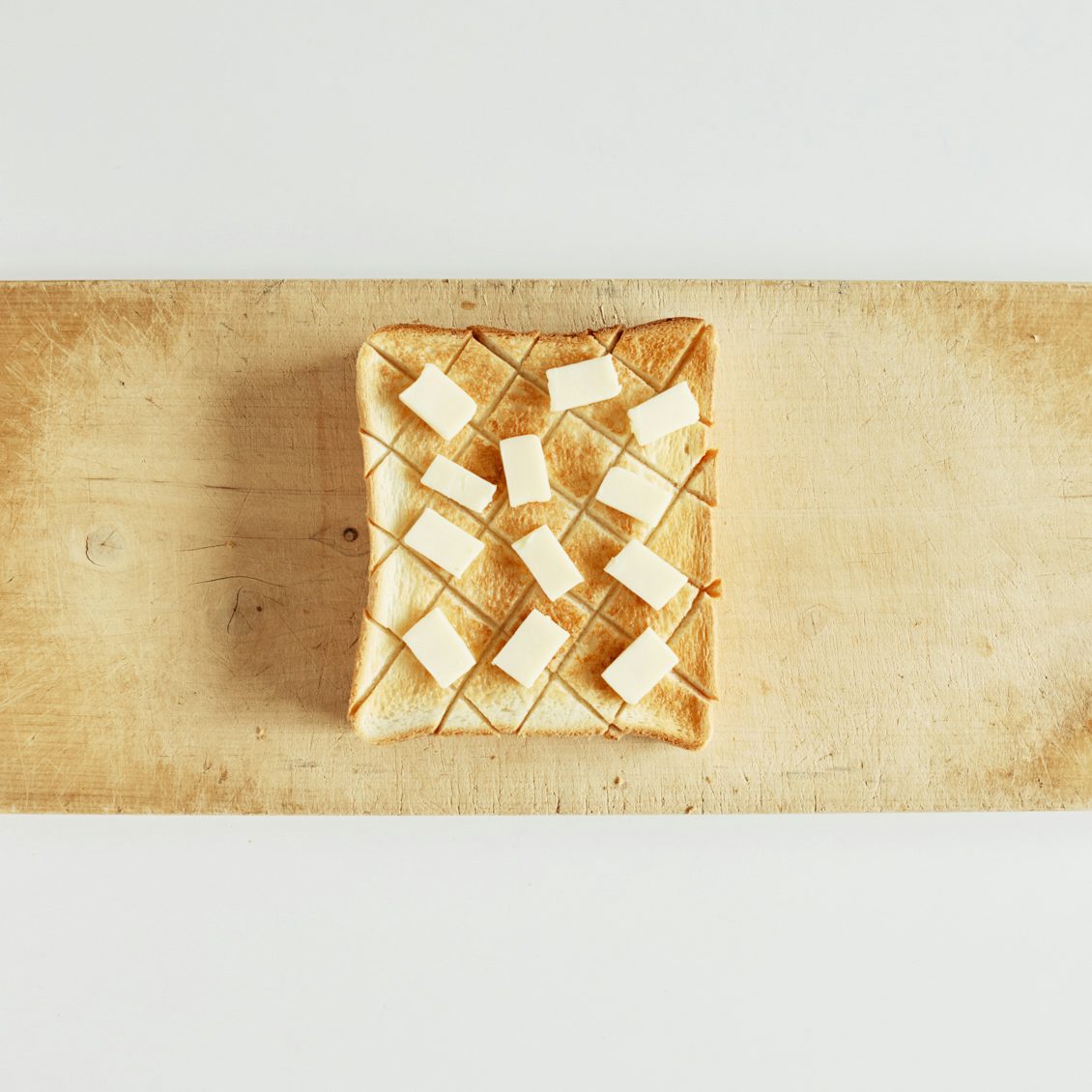 トーストし、こんがり色づいたら取り出して、バターを全面にのせて溶かす。
