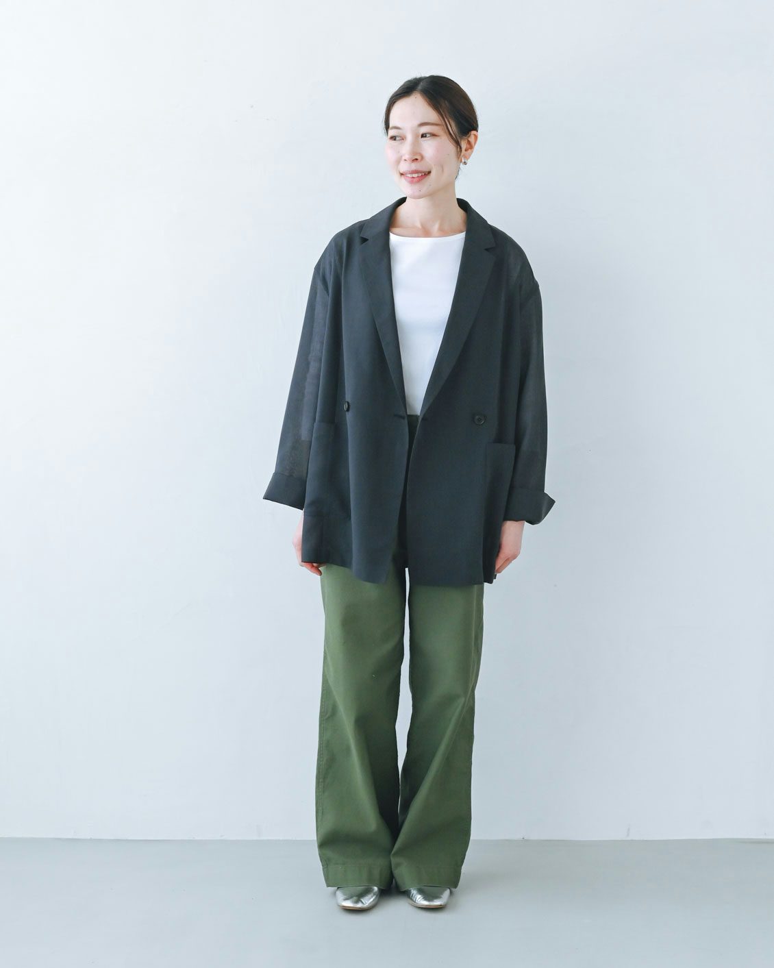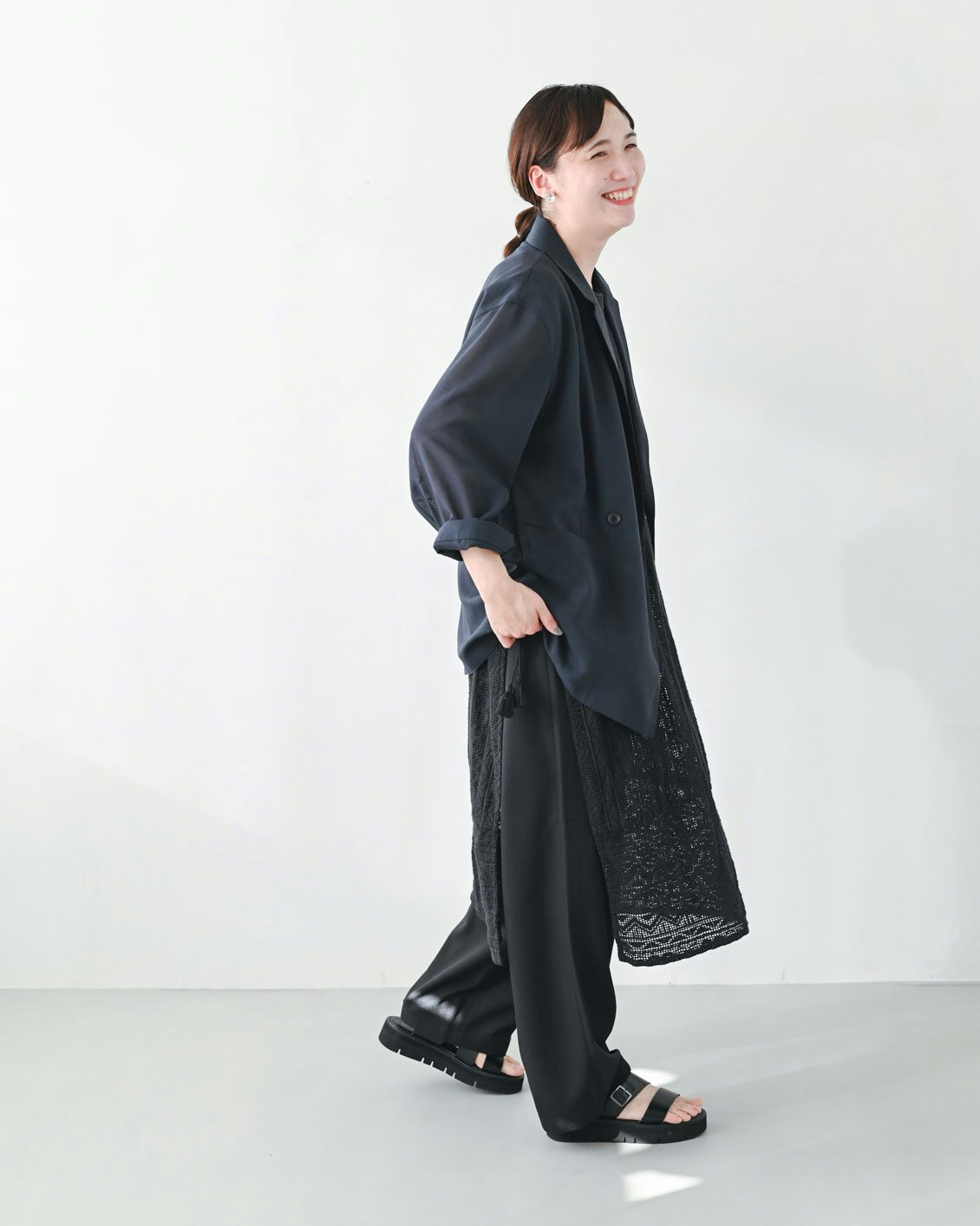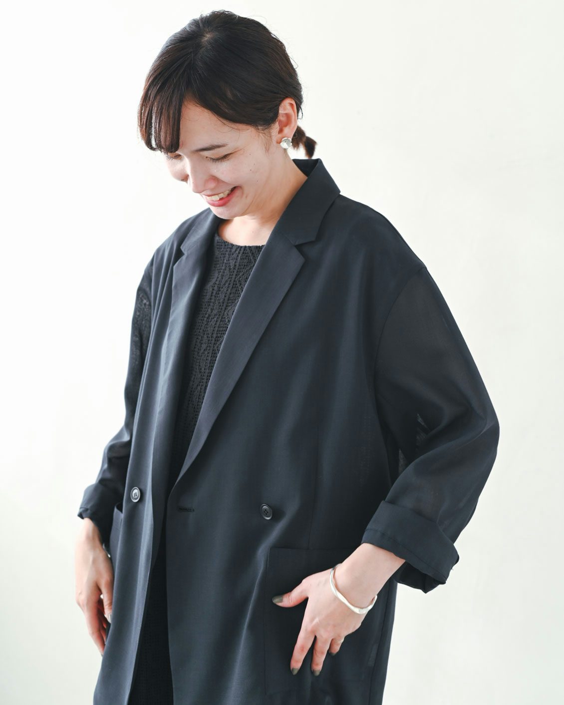 きちんと感を纏えて、カジュアルコーデにもなじむ「シアージャケット」を作りました。ゆったりシルエットなので、カーディガン感覚でラフにざっくり羽織れます。