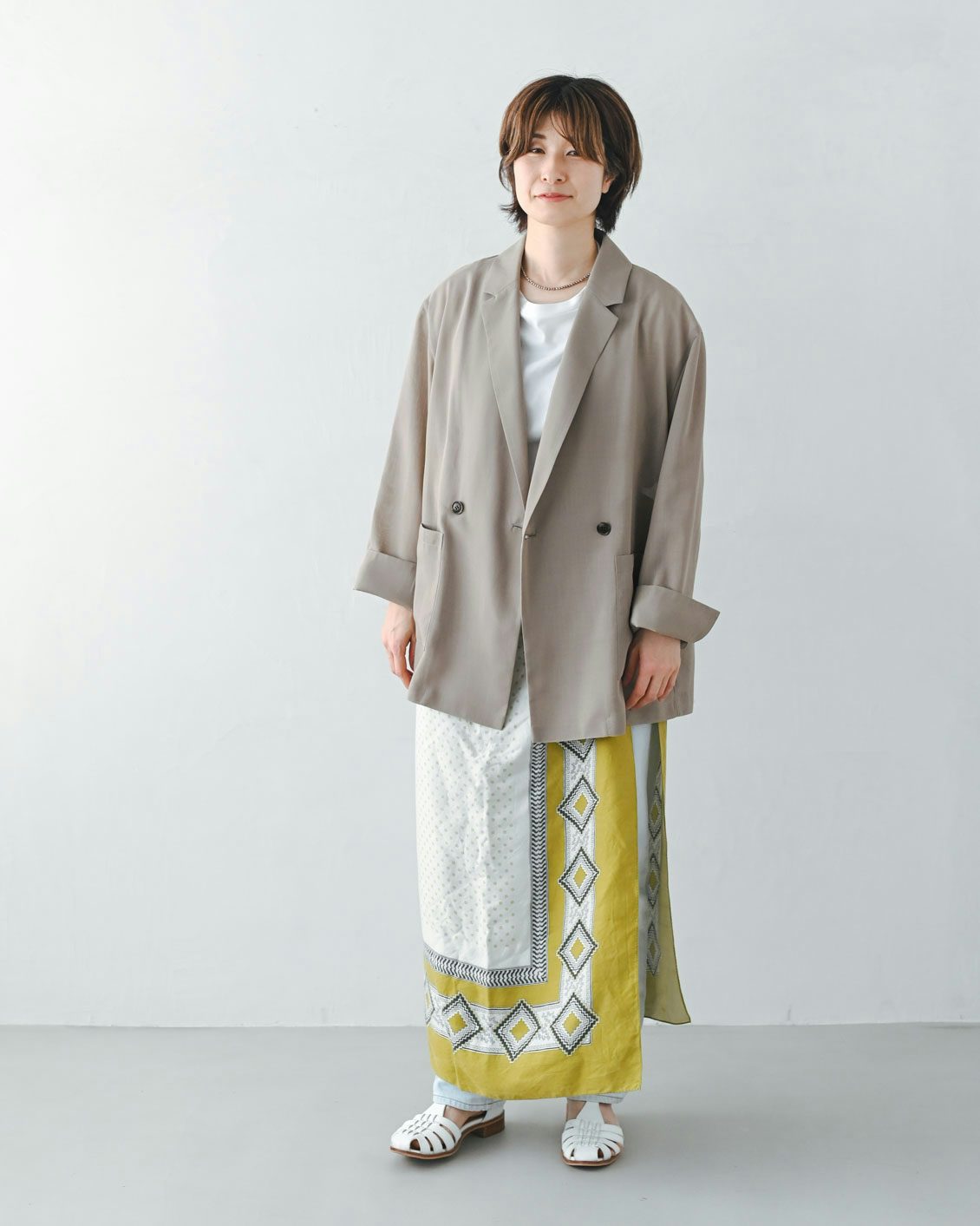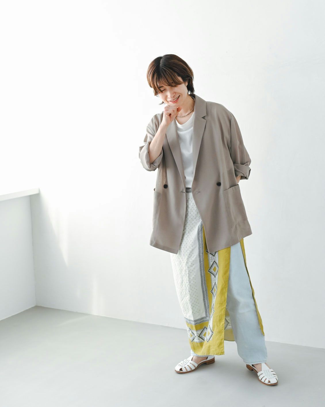 「生地の質感がつるんとしすぎず、リネンのようなニュアンスがあるから、きれいめに見えすぎないんだろうなと思います。