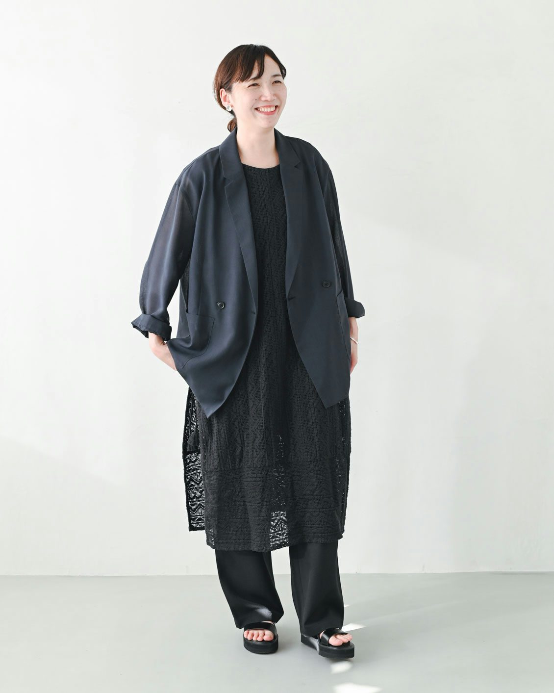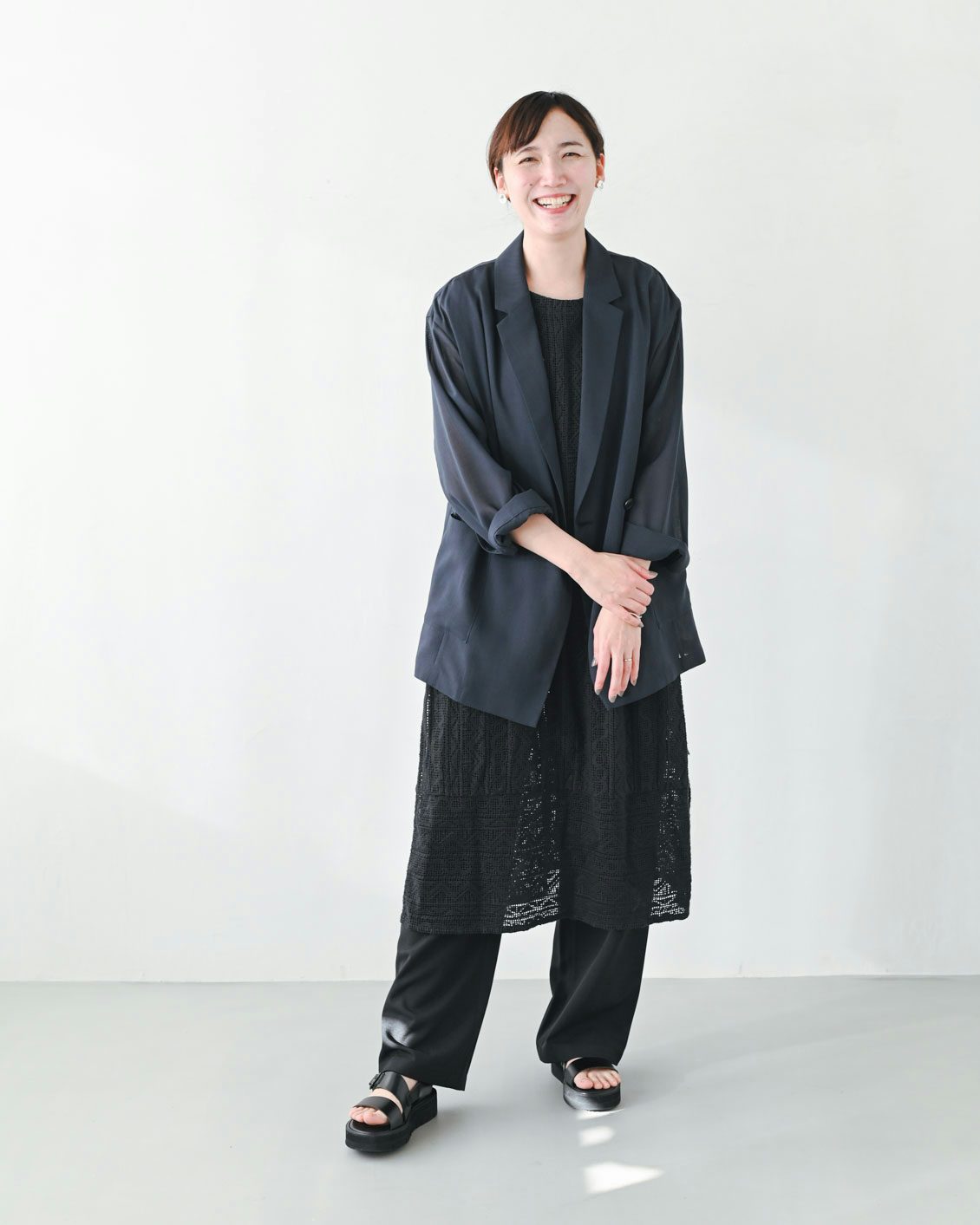 まっすぐ落ちるストレートなシルエットのジャケットなので、ワンピースにも重ねやすく感じました」