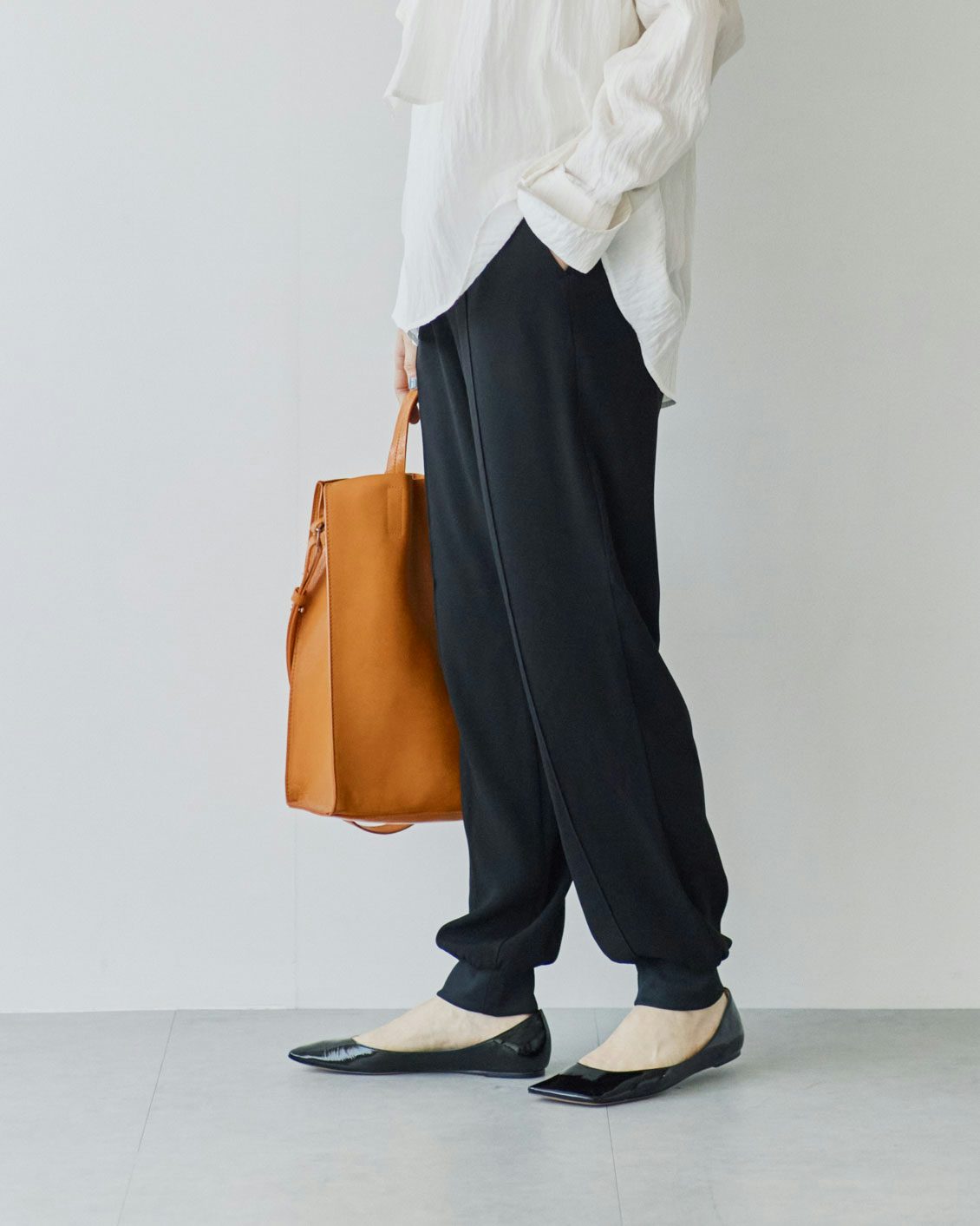 カジュアルな印象が強いアイテムですが、德田さんは、デニムに並ぶ“定番”として、日常的にジョガーパンツを取り入れていらっしゃるのだそう。