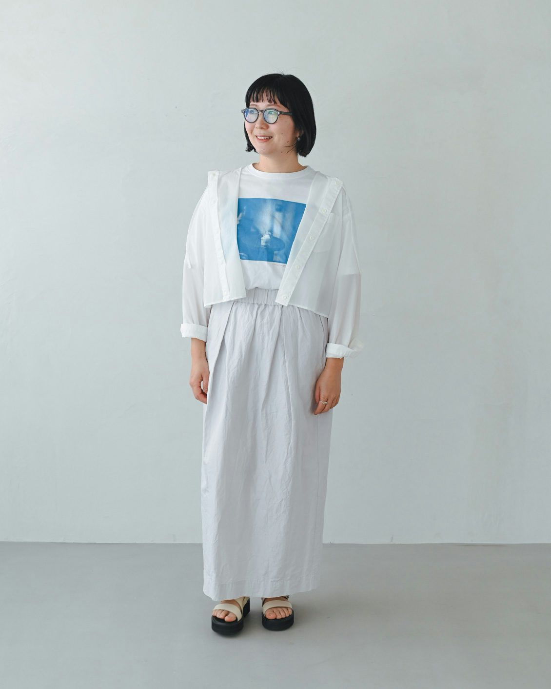 フリーサイズで、カラーはホワイトのみ。着用レビューでは、身長や体型の異なる4名が試着してみた様子をお届けします。