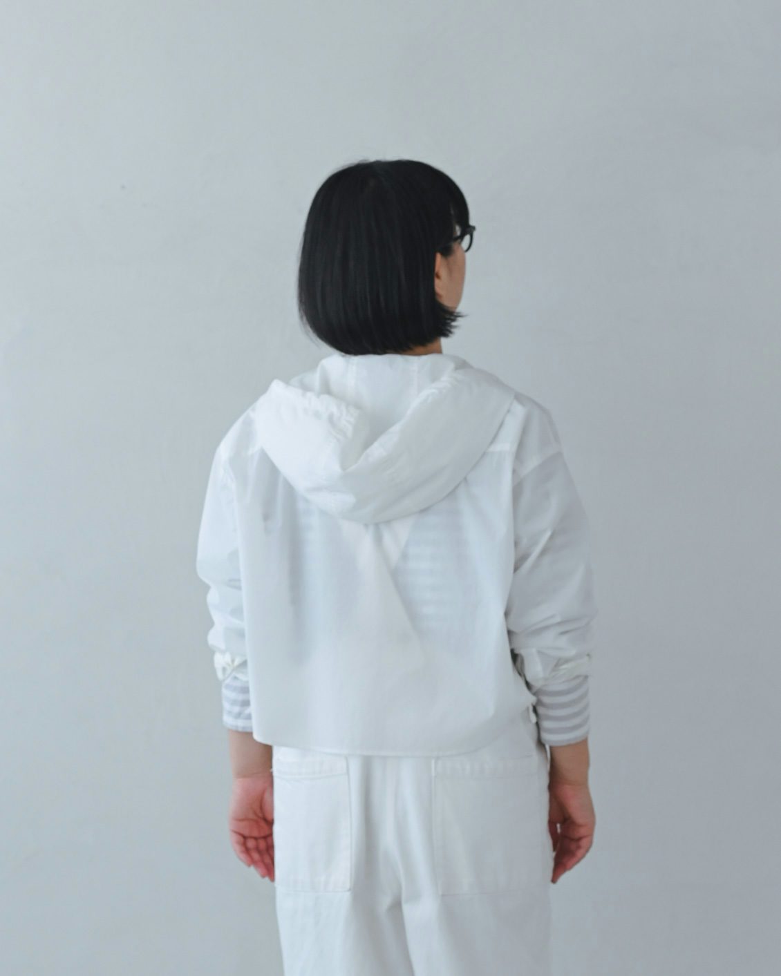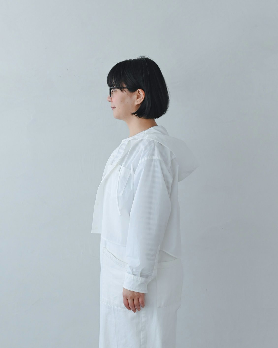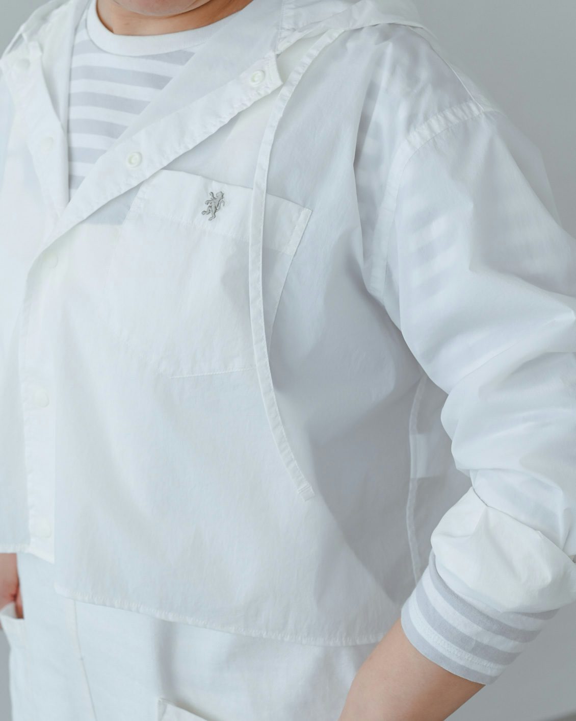 新しいアイテムを取り入れるときは少し緊張するので、ワントーンで合わせるようにしていて。今回は白いサロペットと着てみたら、スポーティな雰囲気が程よく落ち着いて、いつもの自分の延長で着られた気がします」