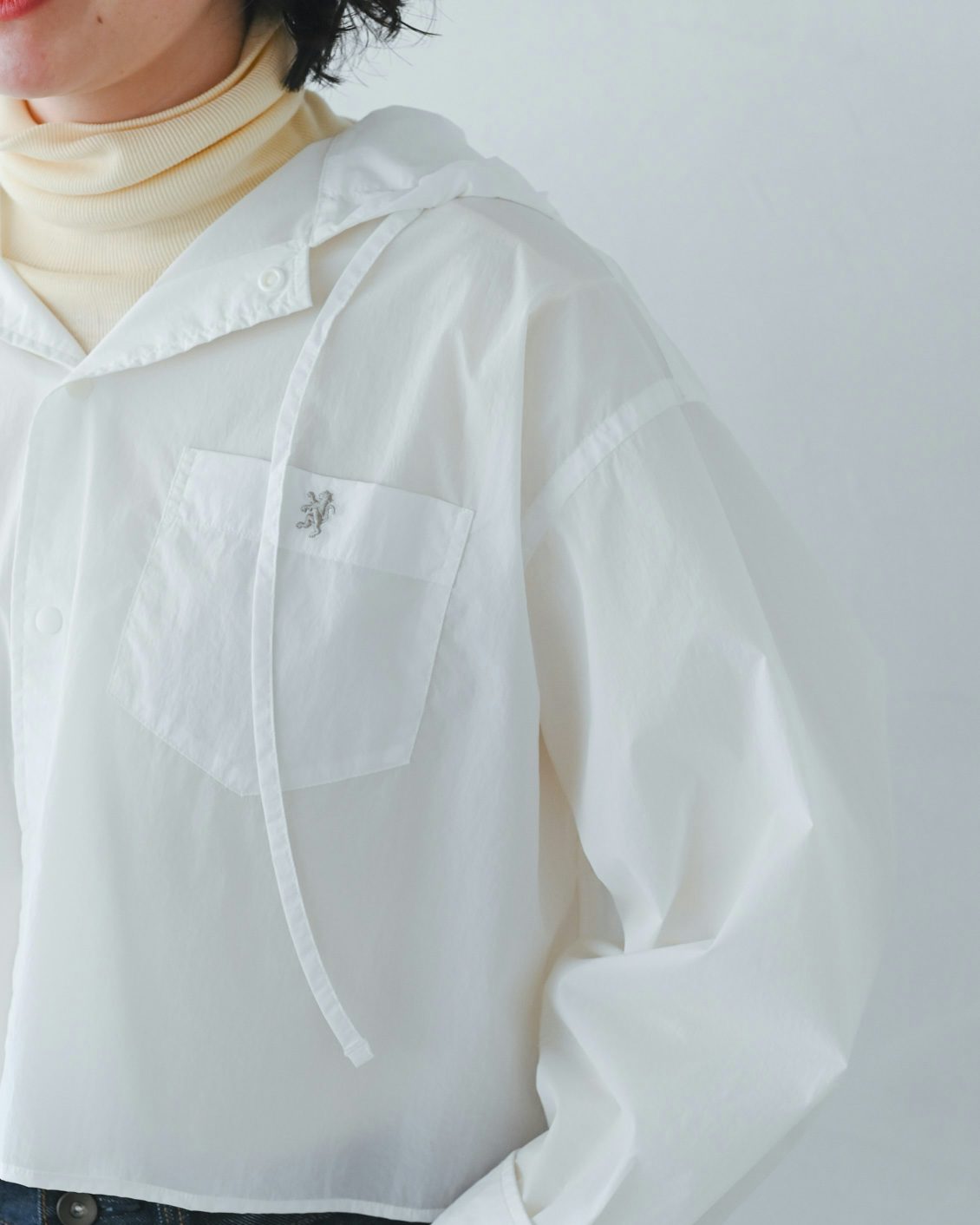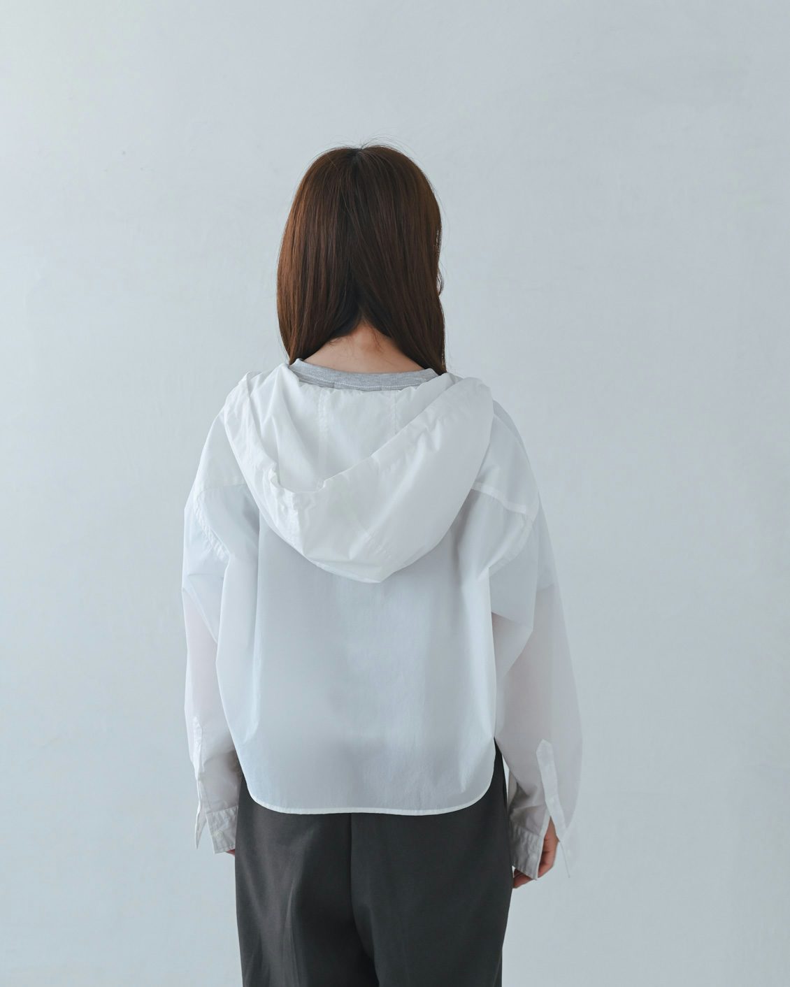 そんなシーンにぴったりで、軽くて持ち運びにも便利な「Gymphlex(ジムフレックス)」のフード付きナイロンシャツが届きました。