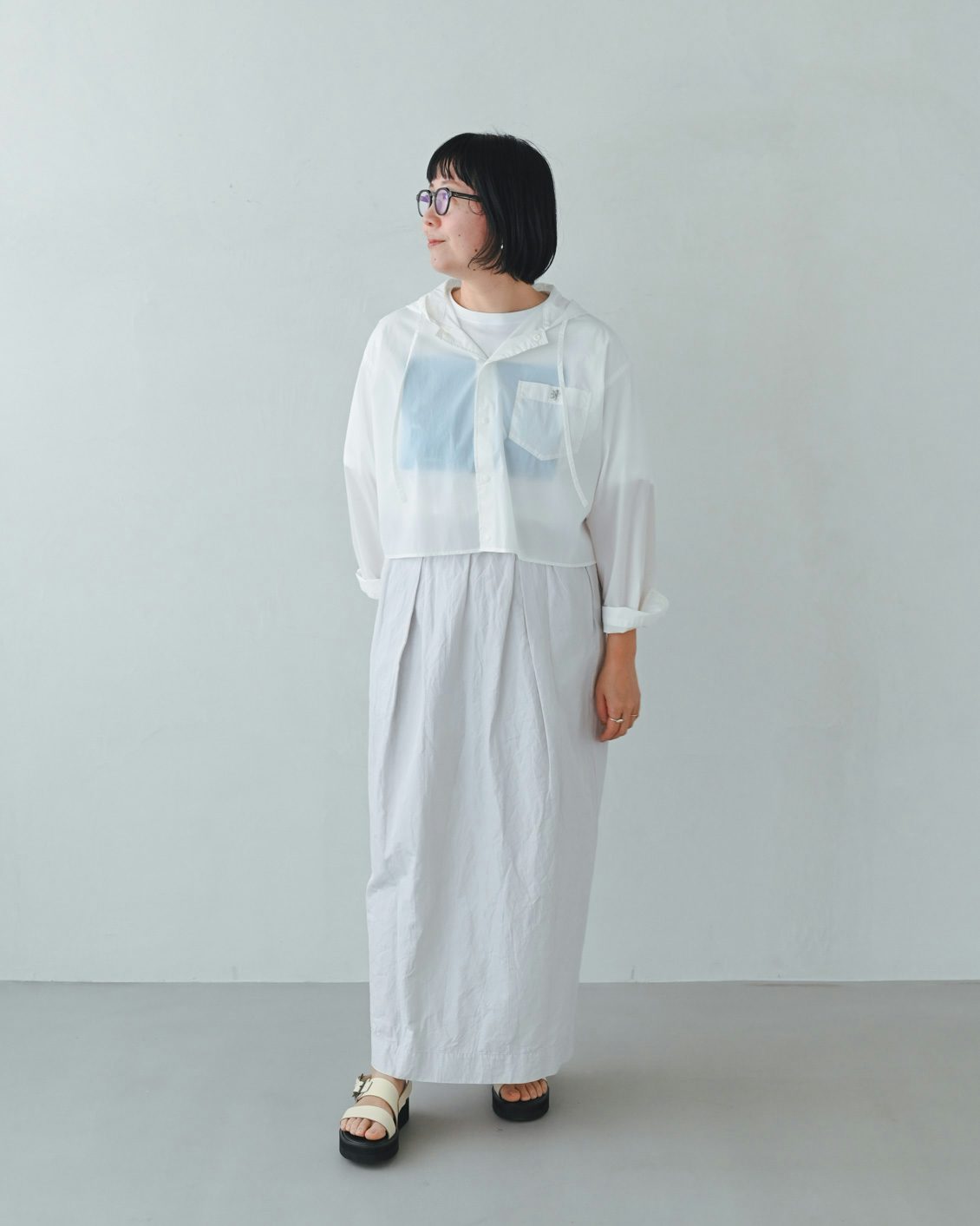一見スポーティな印象ですが、いつもの服に合わせてみると意外なほど馴染みがよく驚きました。気軽に羽織るだけで夏コーデを味変できそうです。