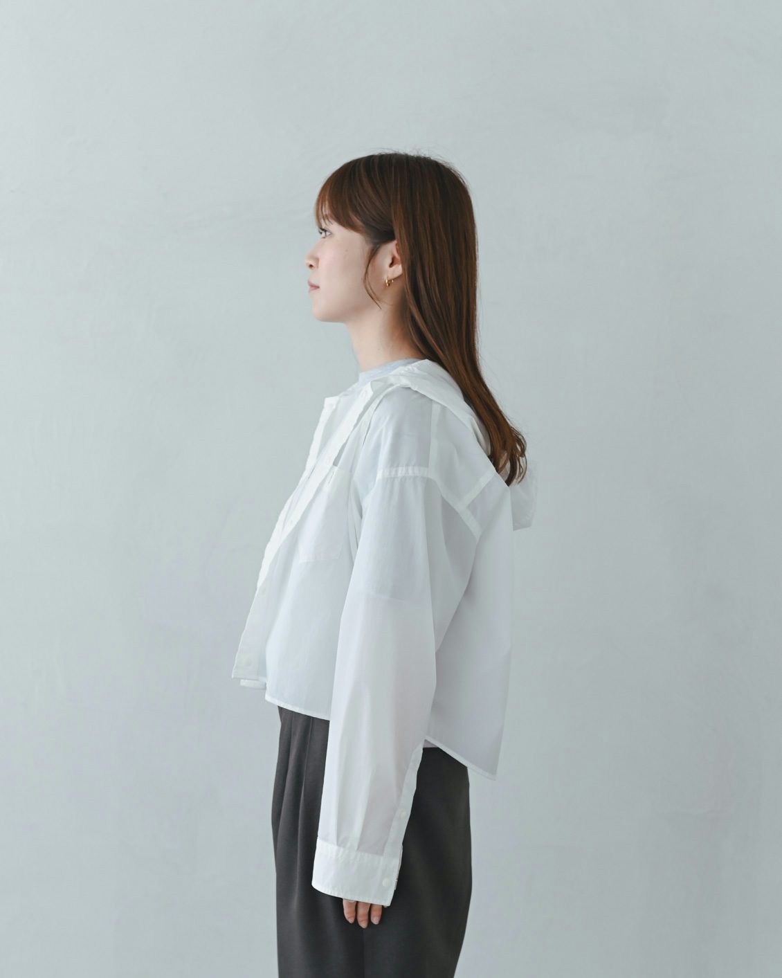 袖幅にも程よくゆとりがあるので、半袖の上にパサッと羽織るのにちょうどいいですね」