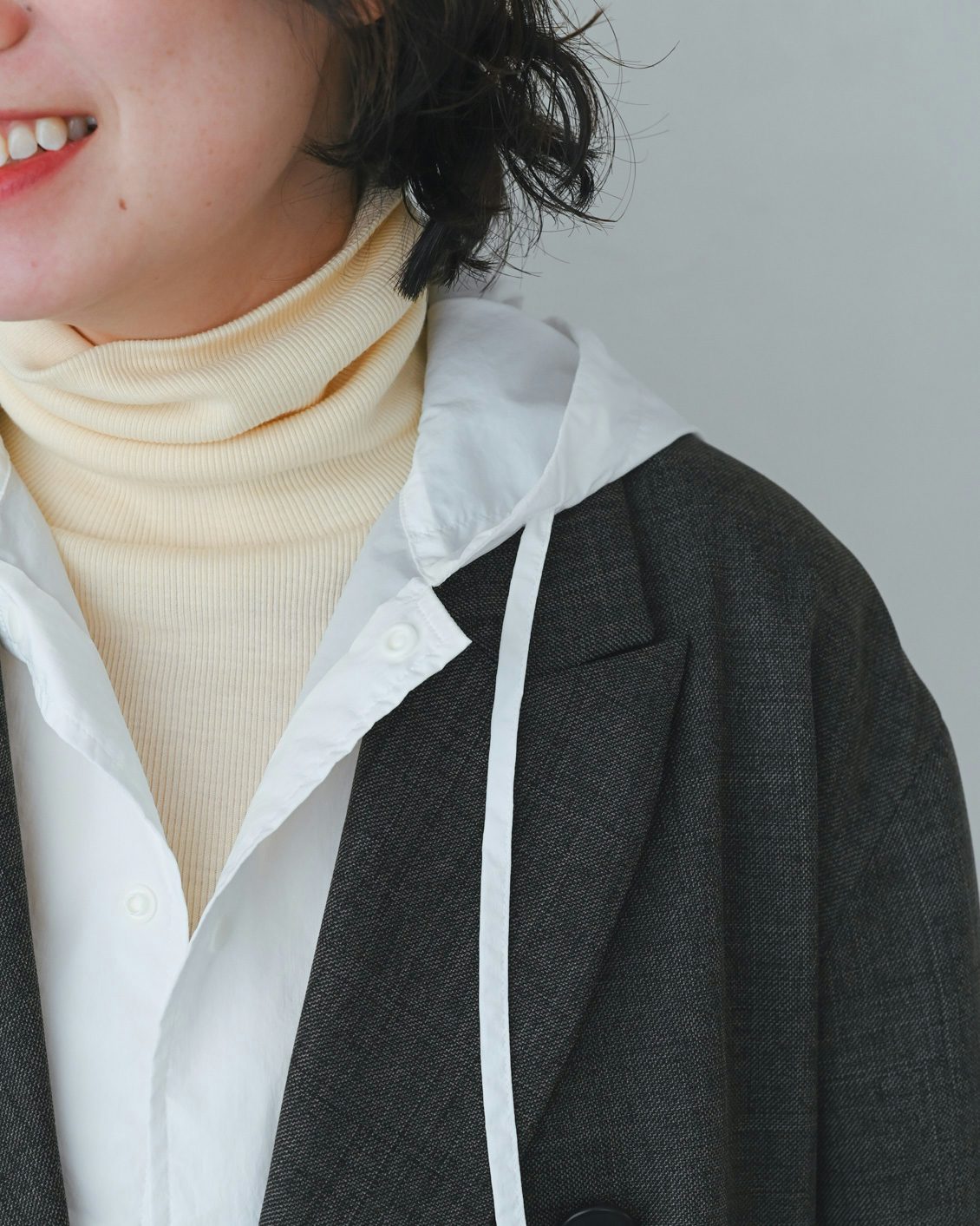 「0.5枚分くらいの軽やかな着心地なので、レイヤードコーデにもぴったり。きれいめ要員であまり出番がなかったジャケットも、これを挟むと一気にカジュアルに。