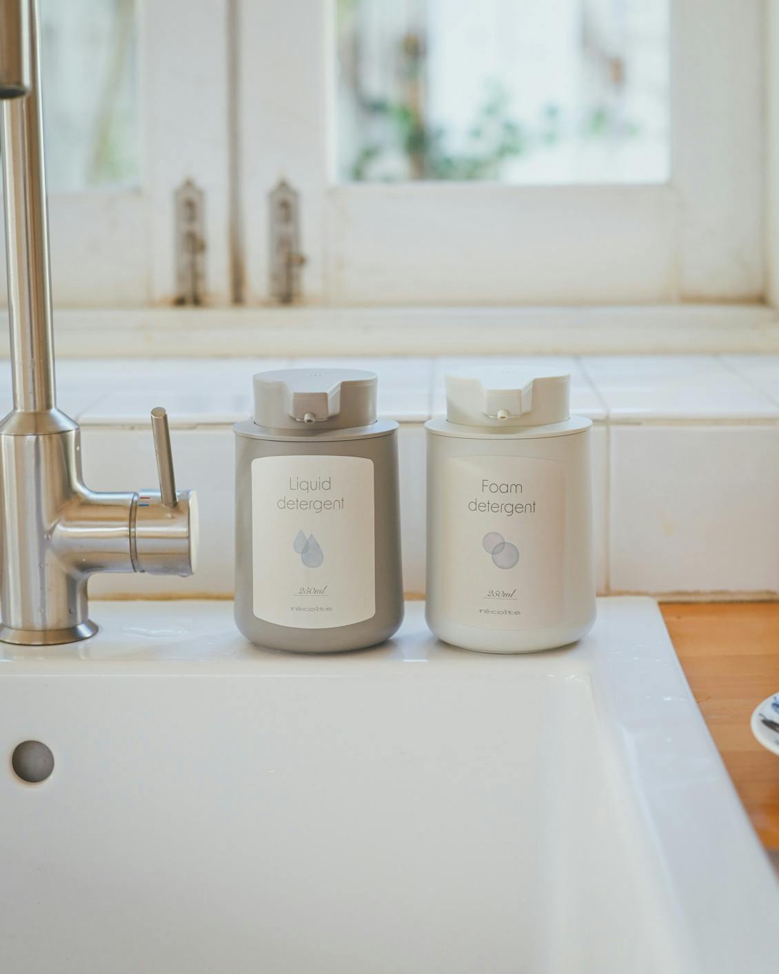 圧迫感のないデザインなので、キッチンに手洗い用を並べておくのもおすすめですよ。付属のラベルシールもぜひご活用ください。