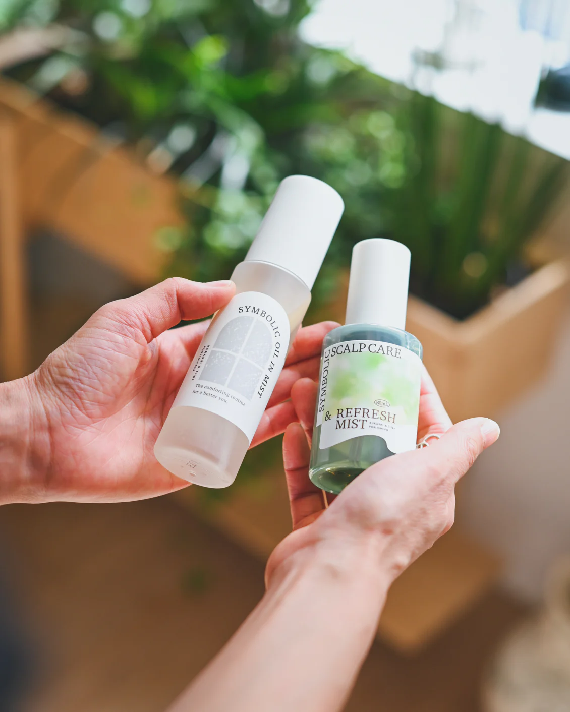 佐藤の切実な思いをきっかけに、理想をとことん追求し、ついに完成したヘアケアシリーズ「シンボリック シルキーヘアマスク」と「シンボリック スカルプケア&リフレッシュミスト」。