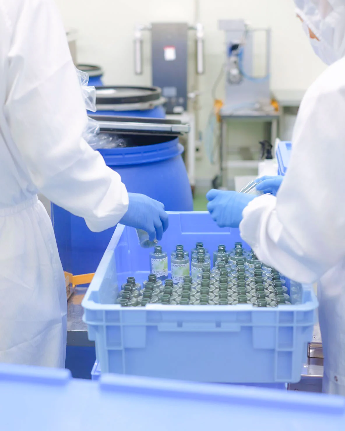 ▲2月初旬、開発スタッフとともに、ヘアケア生産を手がけてくださるメーカーさんの工場(鹿児島県・霧島市)を訪れました