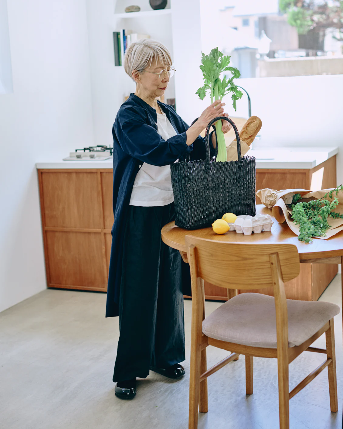 こちらはリネン素材で軽やかなブラックということもあって、濃色と合わせても重たくなりすぎず、合わせやすいなと思いました。