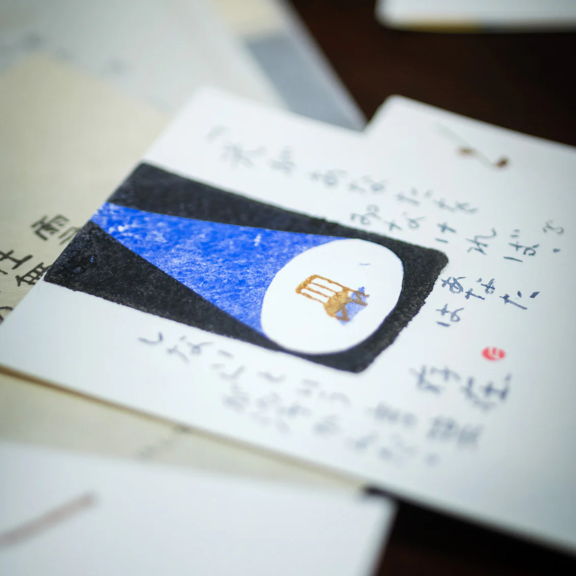 もう少し大きなカードサイズの作品や、文字を刷ったものも。