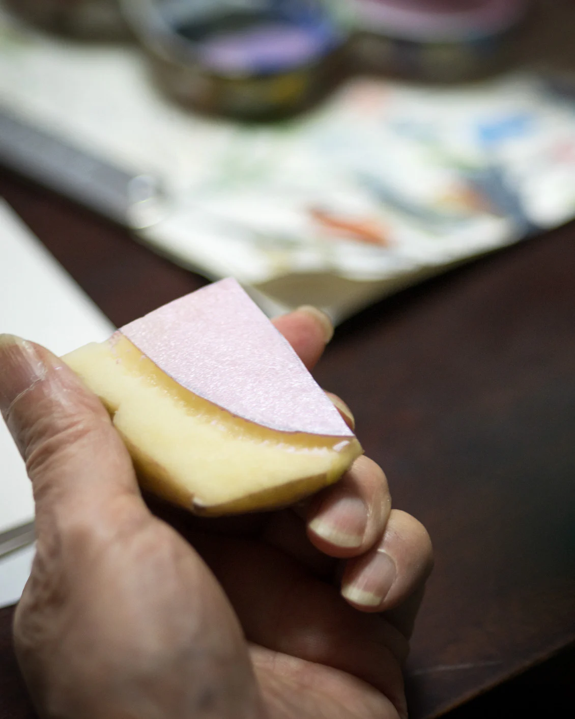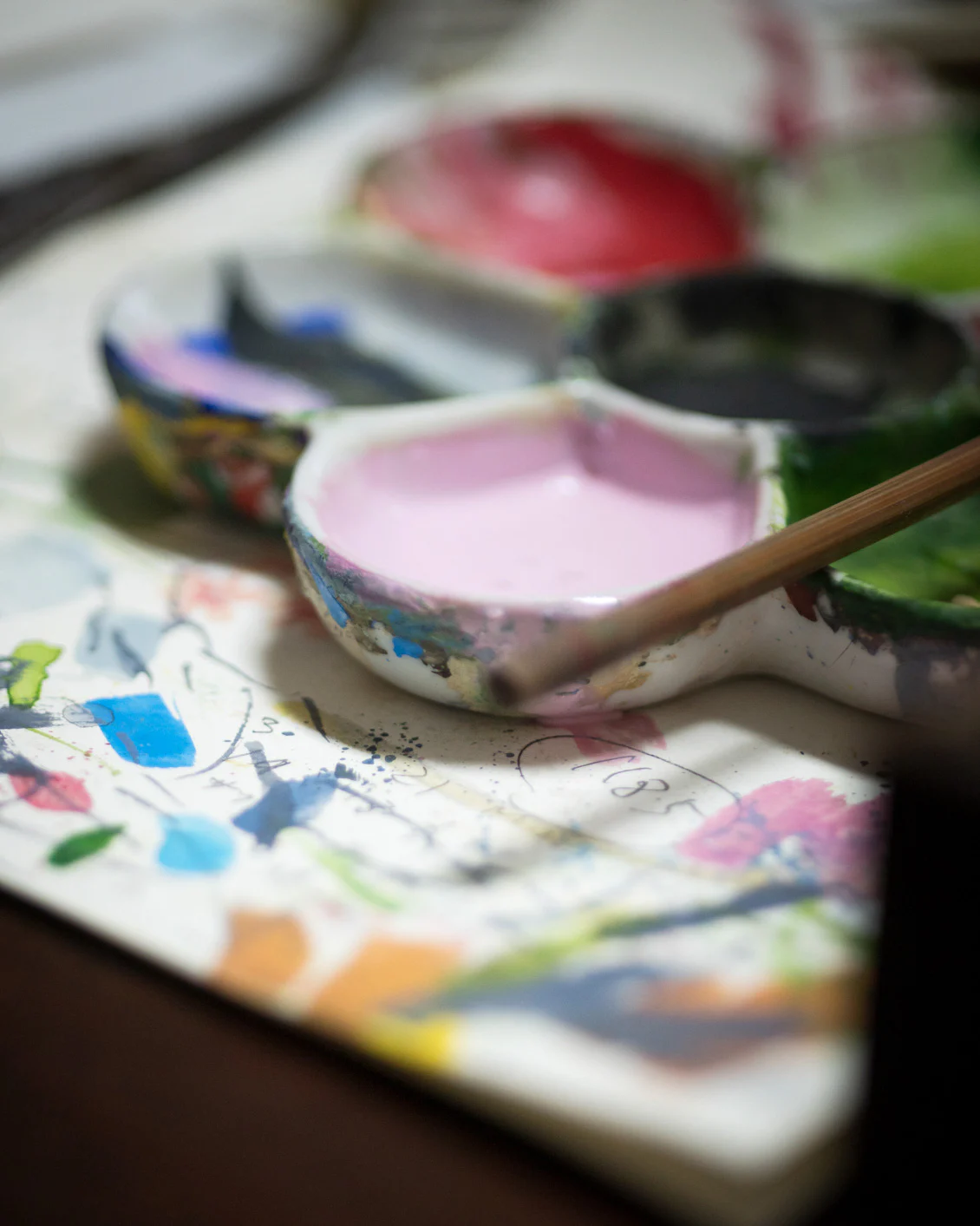 絵の具を混ぜるとき、山室さんは「自然の色はいろいろ混じっているから、原色よりもにごっていて、そのおかげでやわらかく見える」と言っていました。