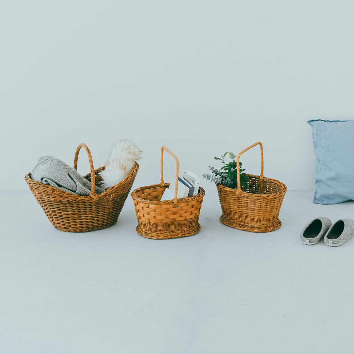「天然ラタンかごシリーズ」はこちらスタッフ3名の自宅でも、かごのある暮らし