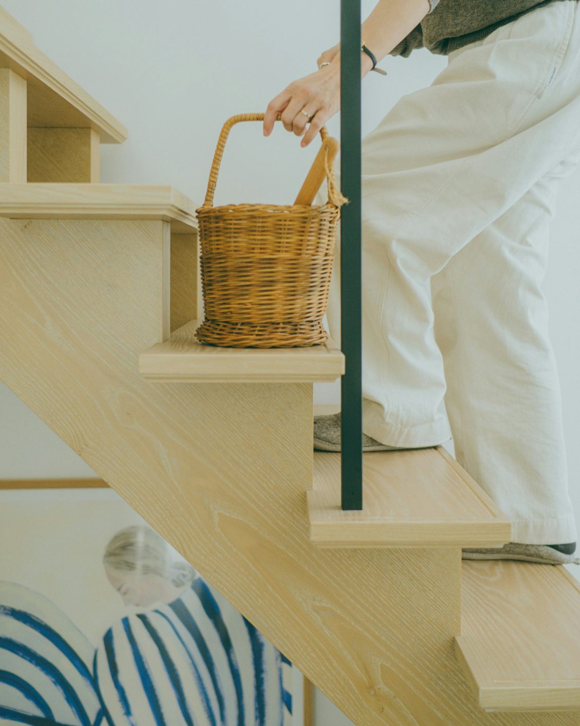 「階段の途中にかごをオブジェのように置けたら素敵だろうなと思っていて。この形は大きすぎなくて、階段の奥行きにジャストフィット。