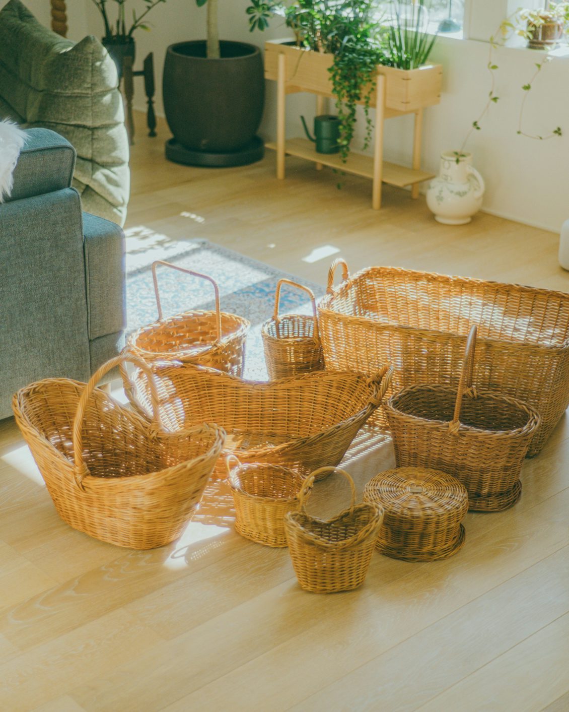 私と同じようなかご好きさんにも、当店に訪れたときそんな景色にときめいてほしいという思いで、かごの仲間を増やすことを決めました。