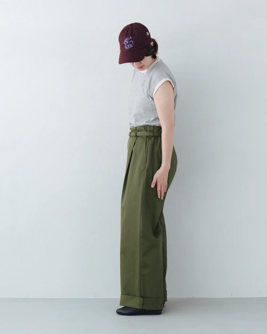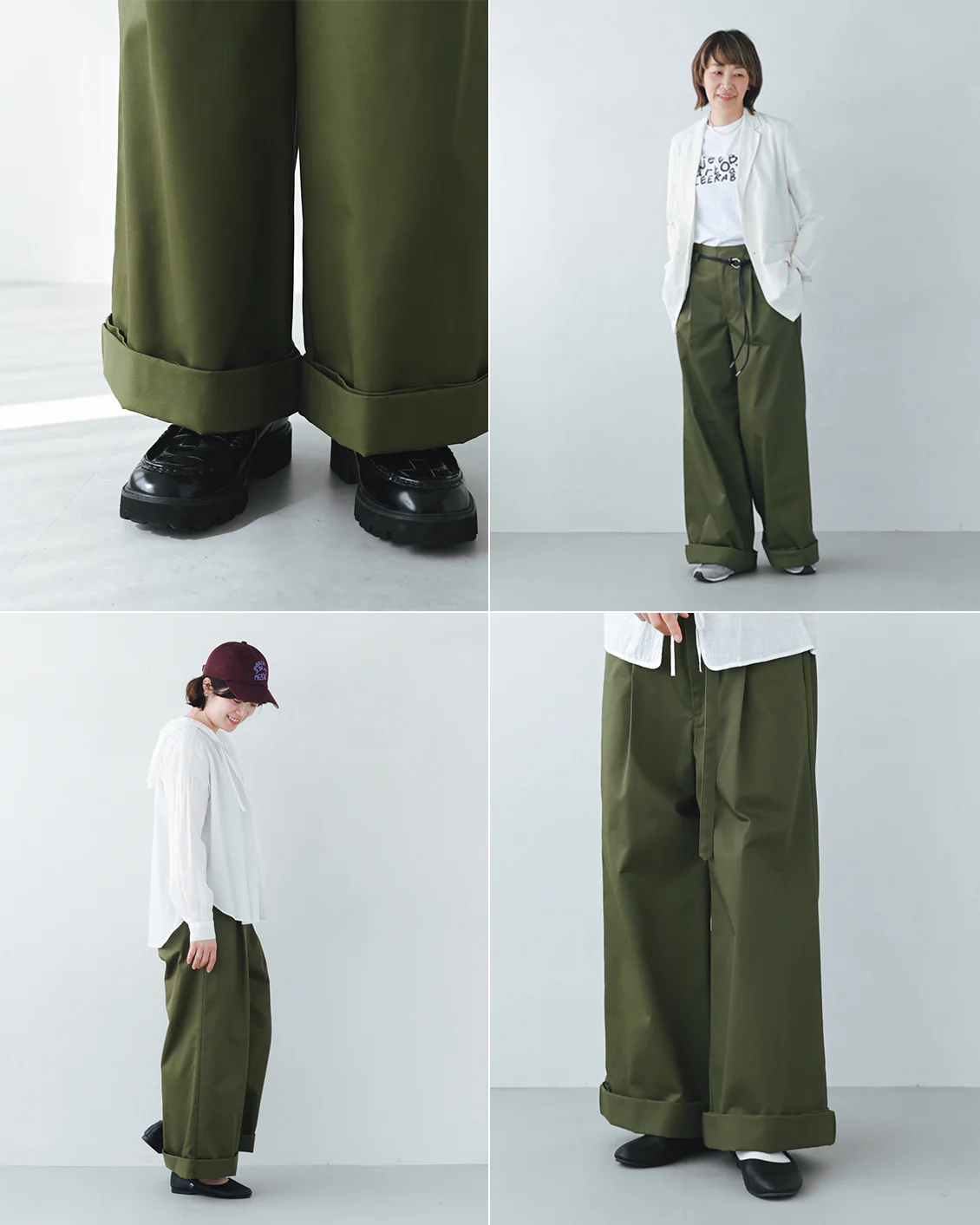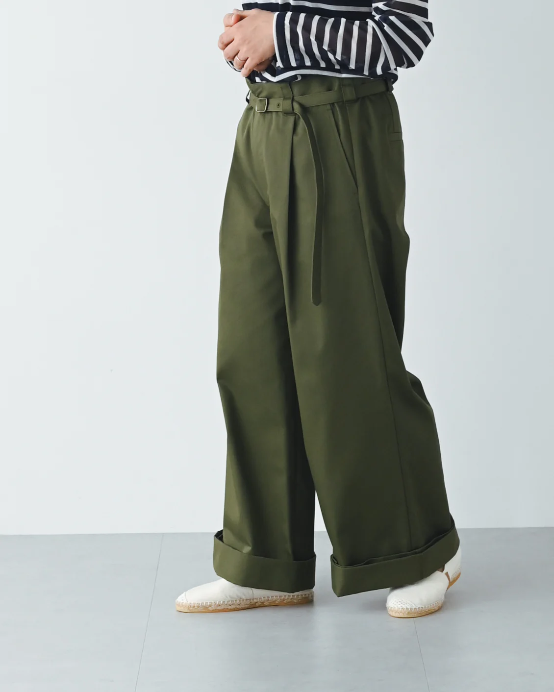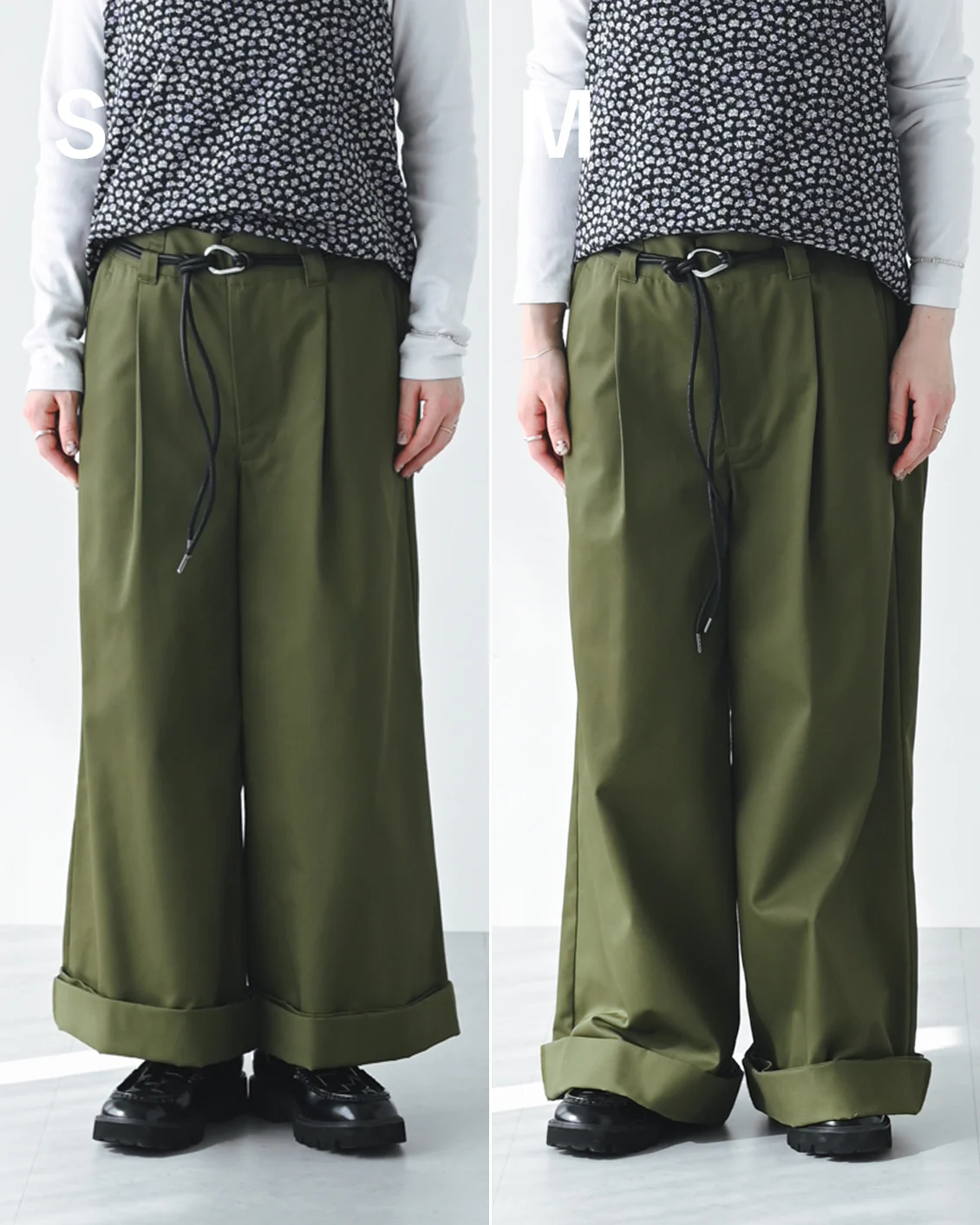 ウエストまわりのゆとりがたっぷりあるので、ウエスト高めの位置でぎゅっとベルトを締めて、あえてくしゅっと穿くのがかわいい!