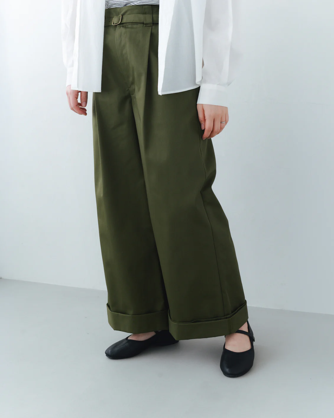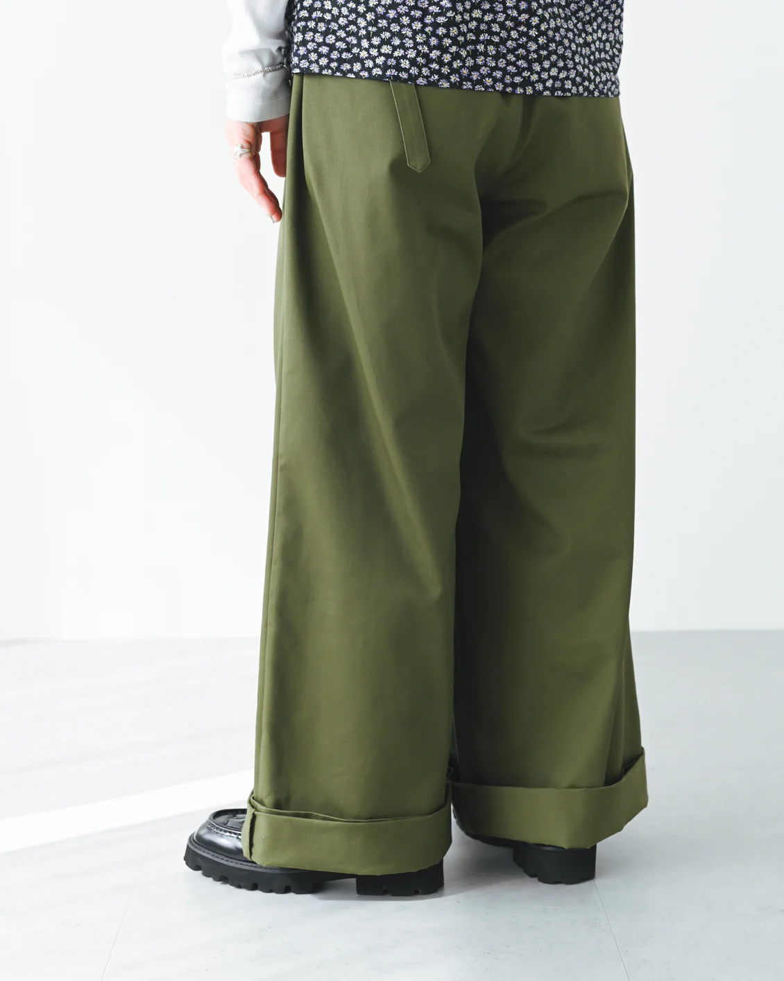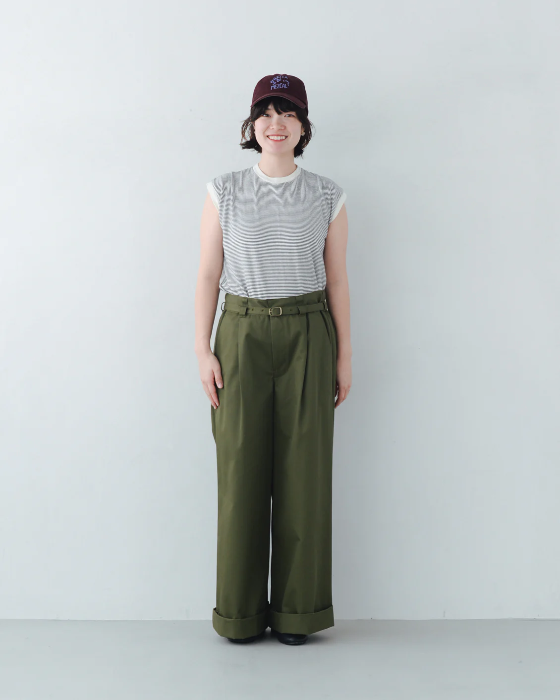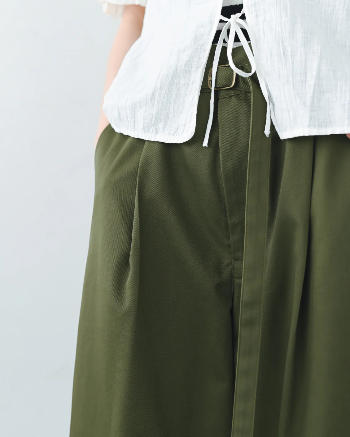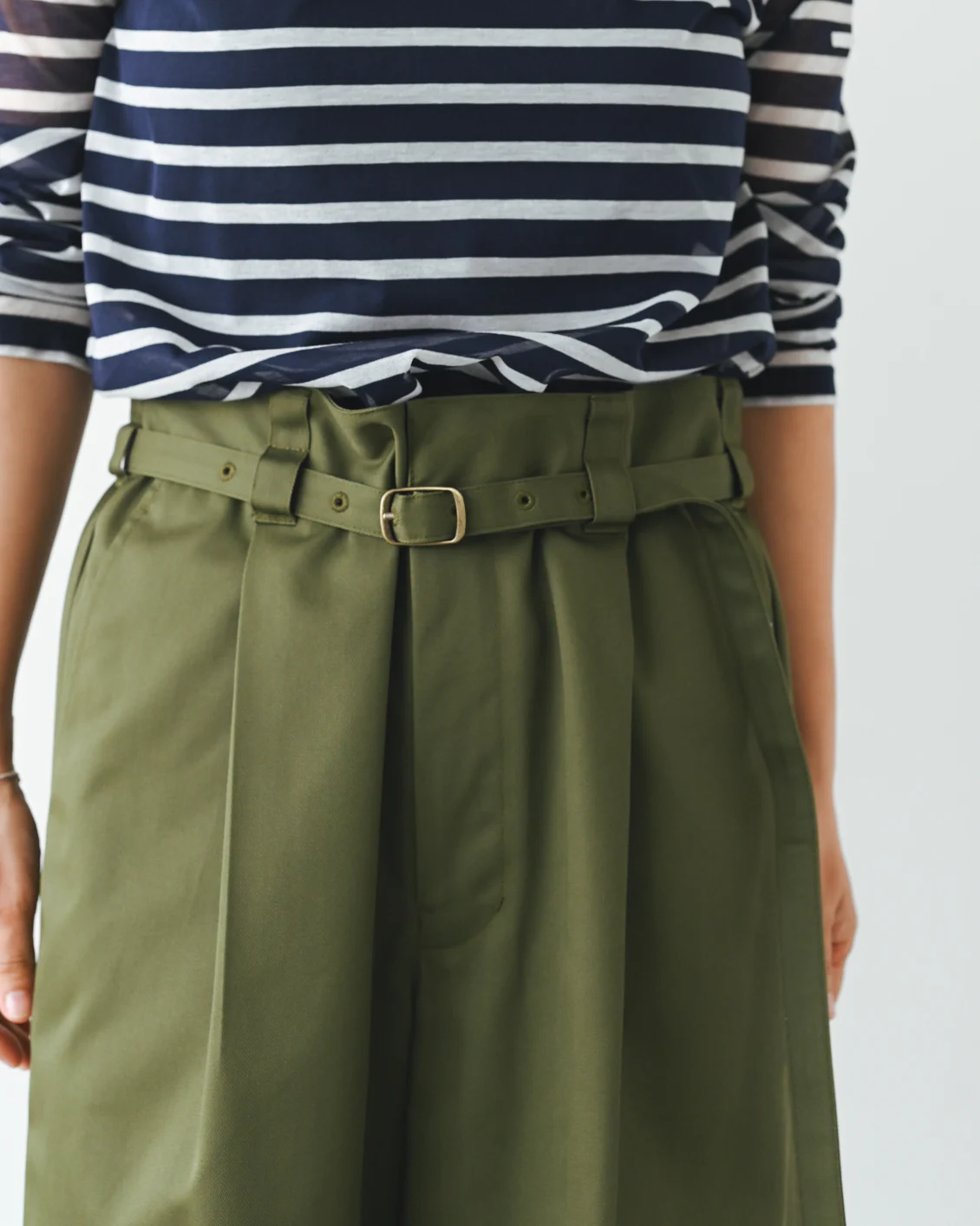 ウエストまわりのゆとりがたっぷりあるので、ウエスト高めの位置でぎゅっとベルトを締めて、あえてくしゅっと穿くのがかわいい!