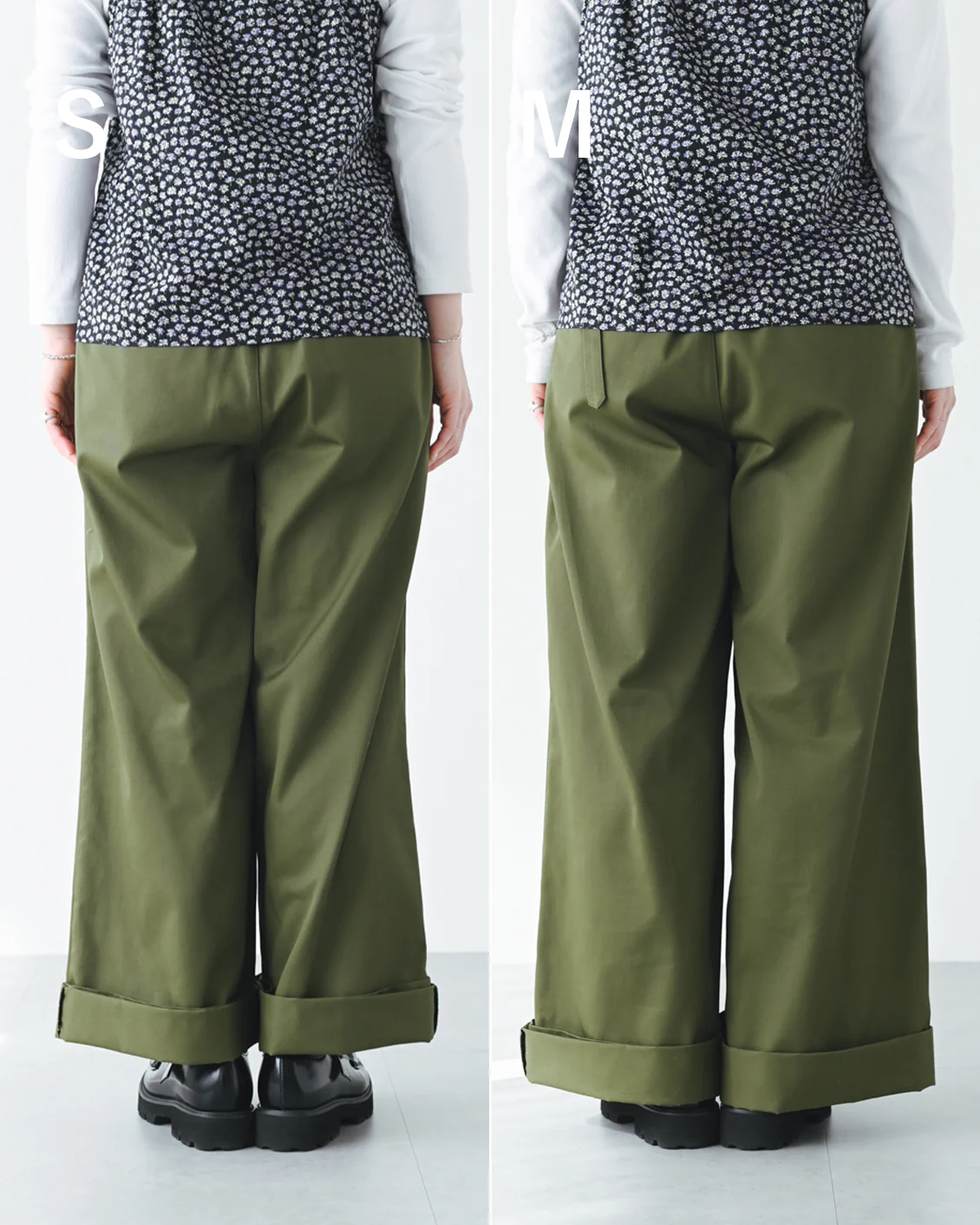 「丈は、届いたときの折幅のまま穿くとやや短く感じたので、半分の幅にするとちょうどいい長さで着ることができました。