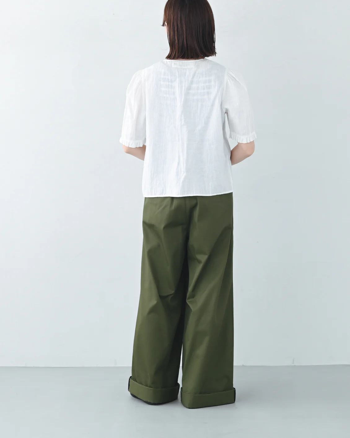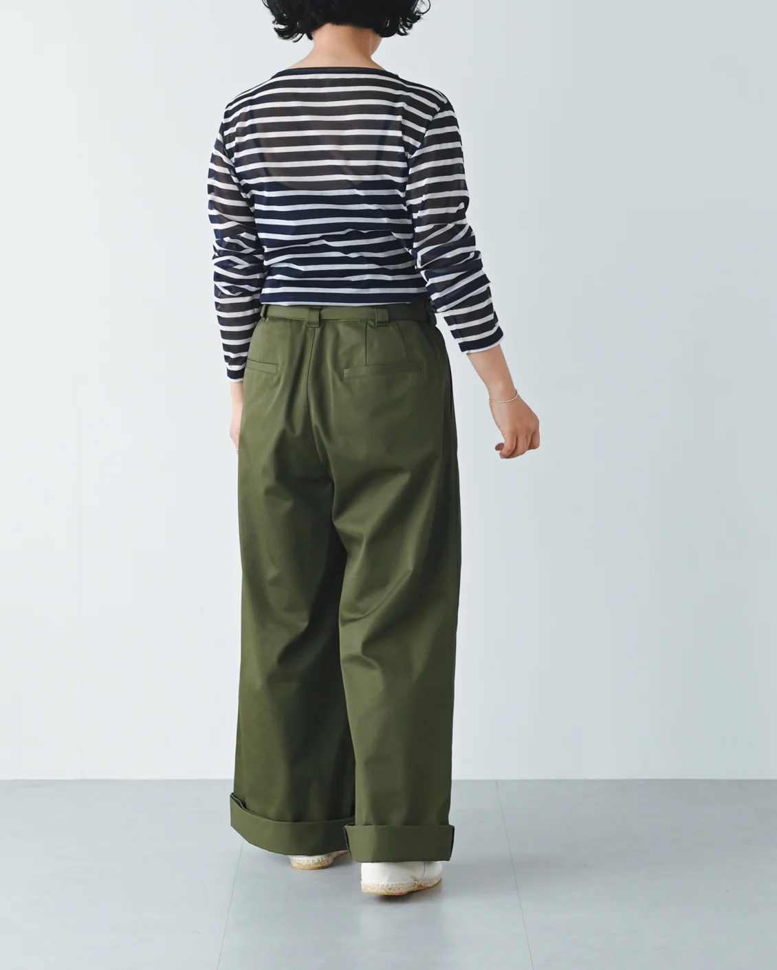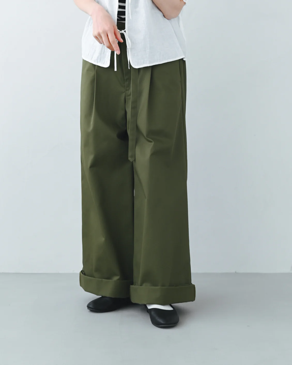 ワイドパンツならではの、空気をはらむ感じもありますね。