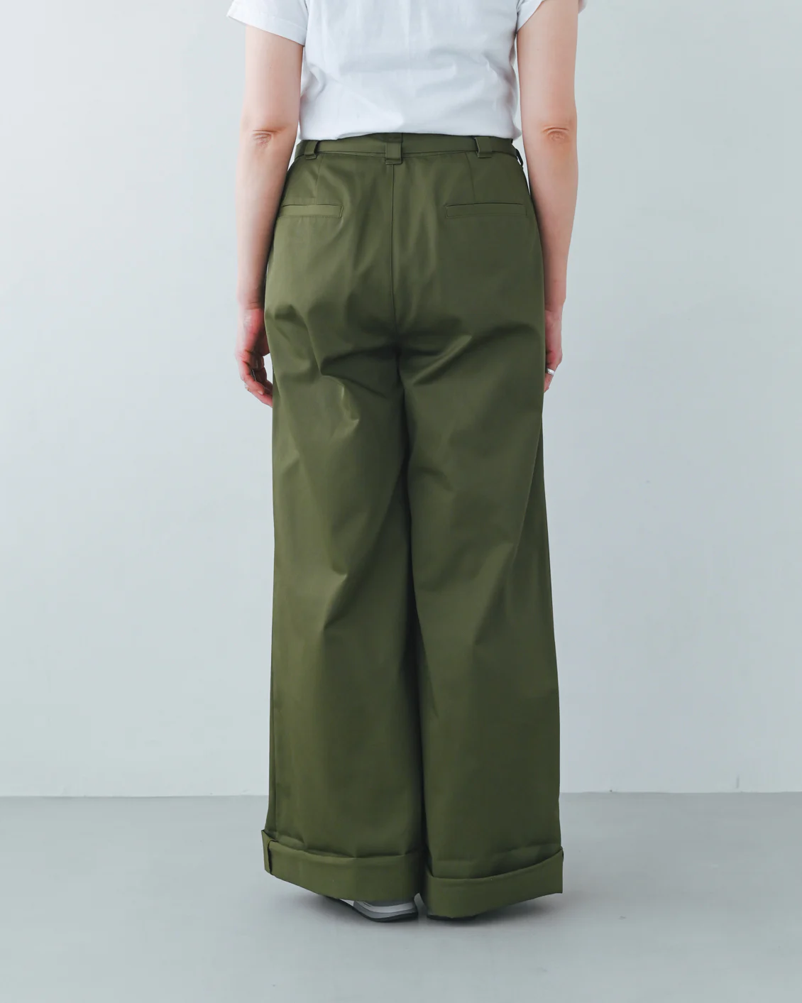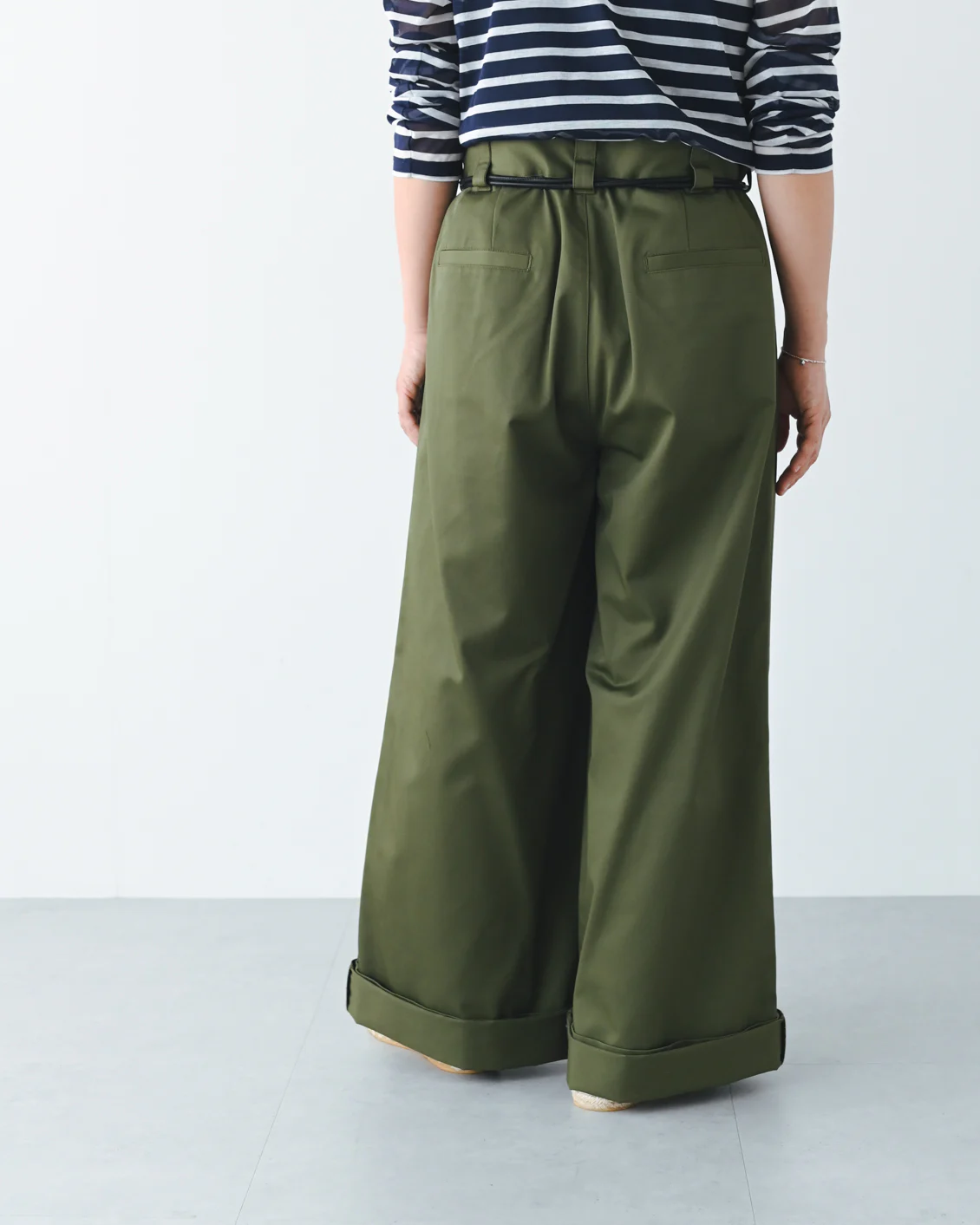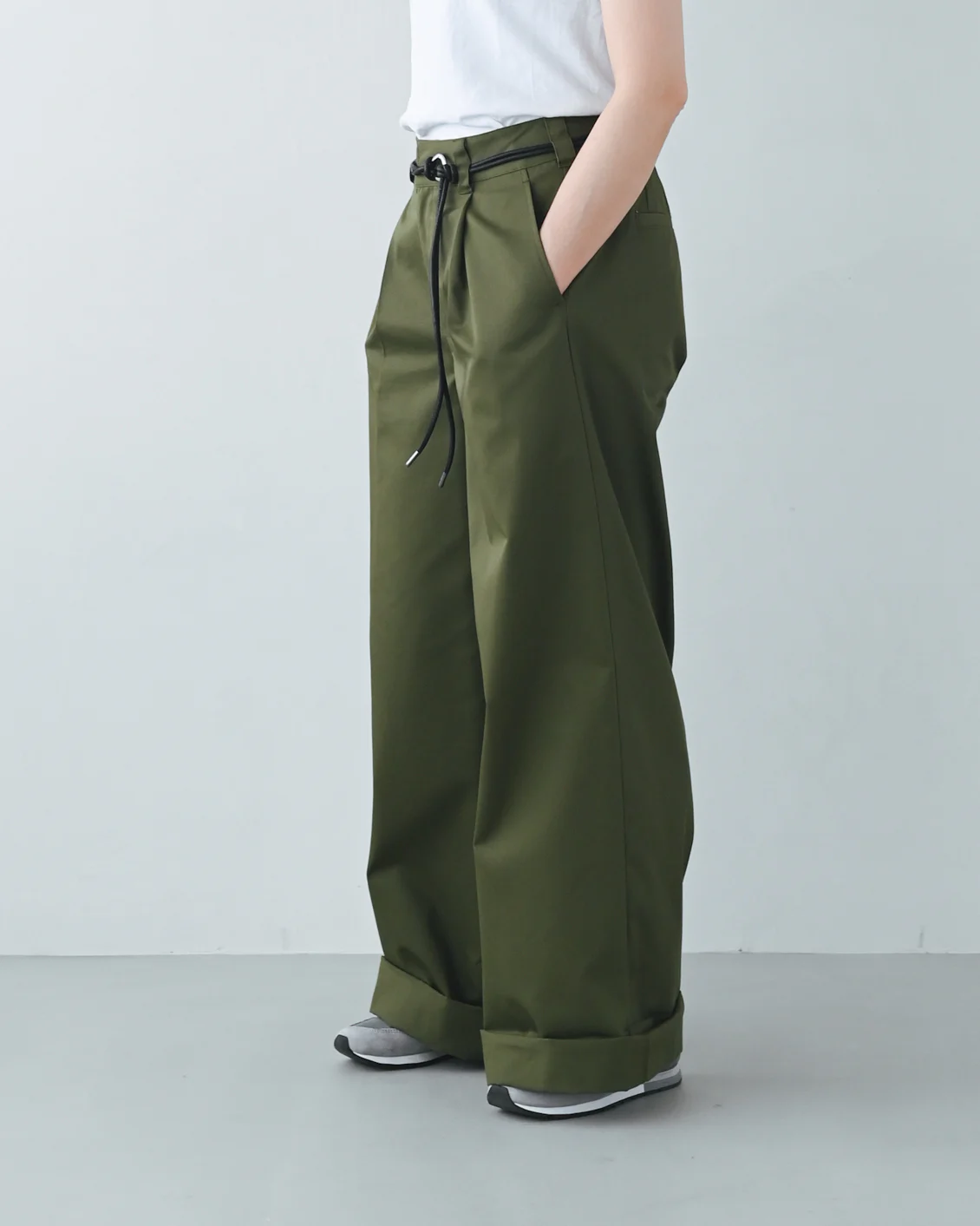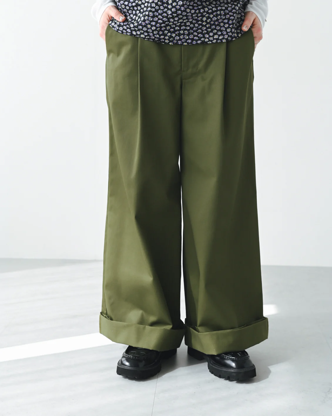 ワイドパンツならではの、空気をはらむ感じもありますね。