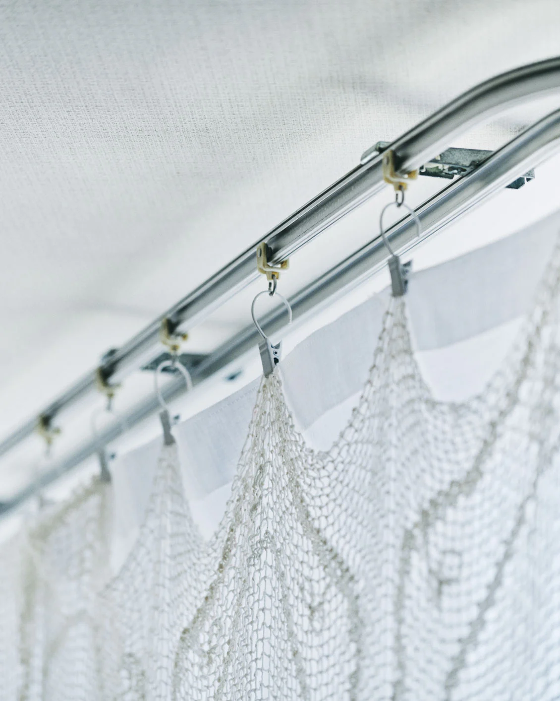 一般的にはレースカーテンを窓に近い方のレールに、遮光カーテンを室内側のレールにつけると思うのですが、うちでは逆につけていて。そうすると、夜カーテンを閉めてもレースが部屋から見えてかわいいんです」
