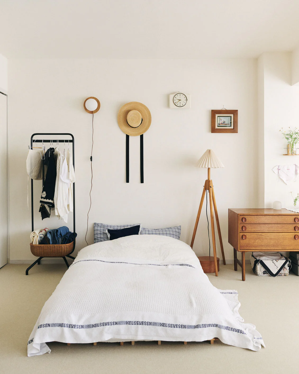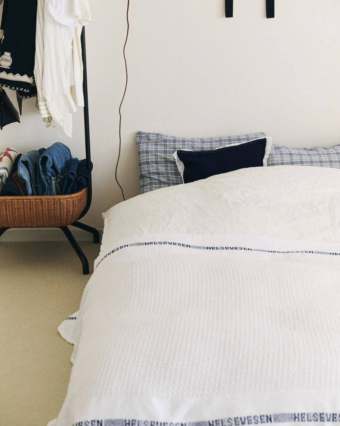 「今は掛け布団カバーはシンプルな白いものを使っていて、上から好きなブランケットをかけています。
